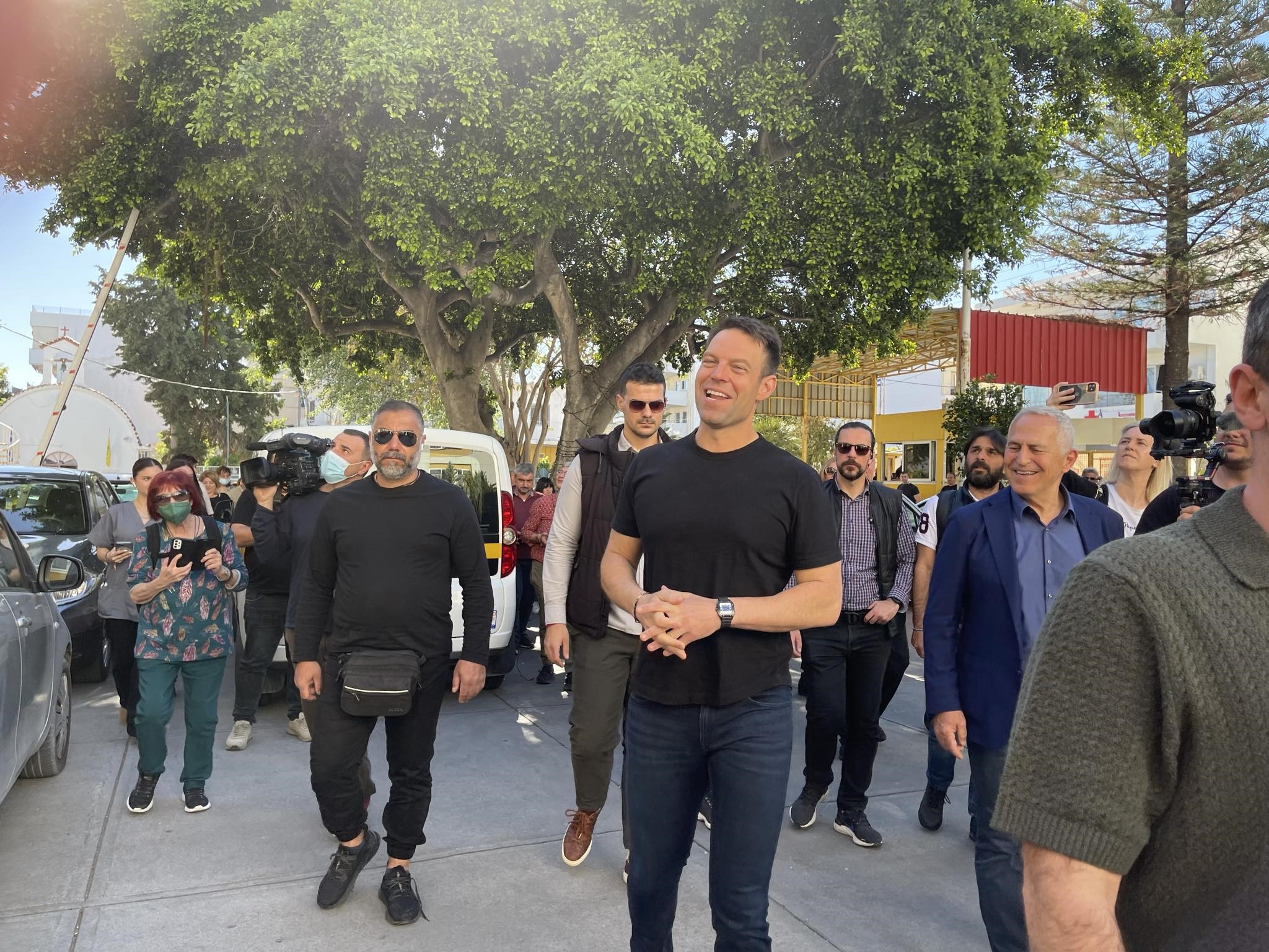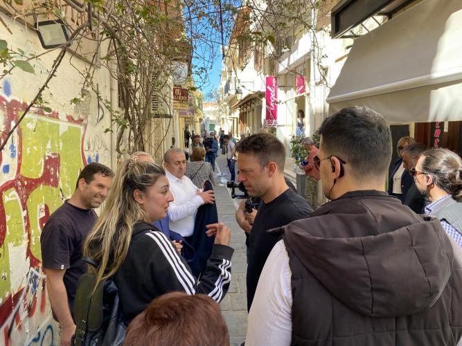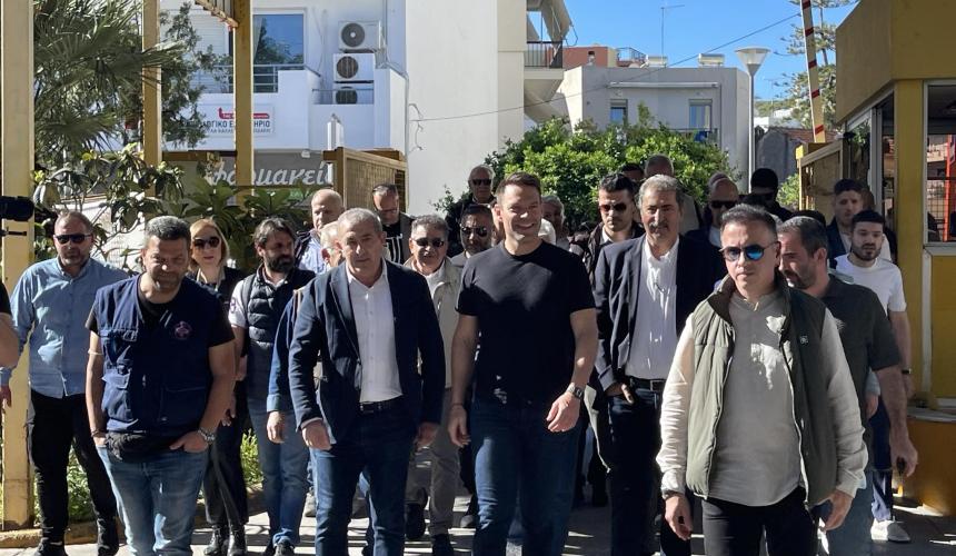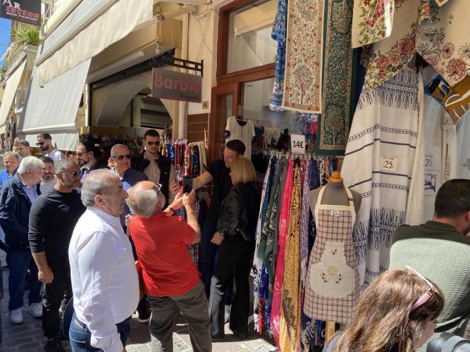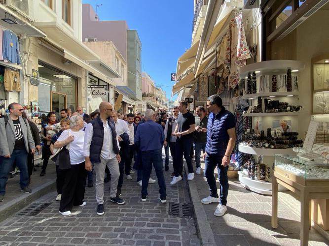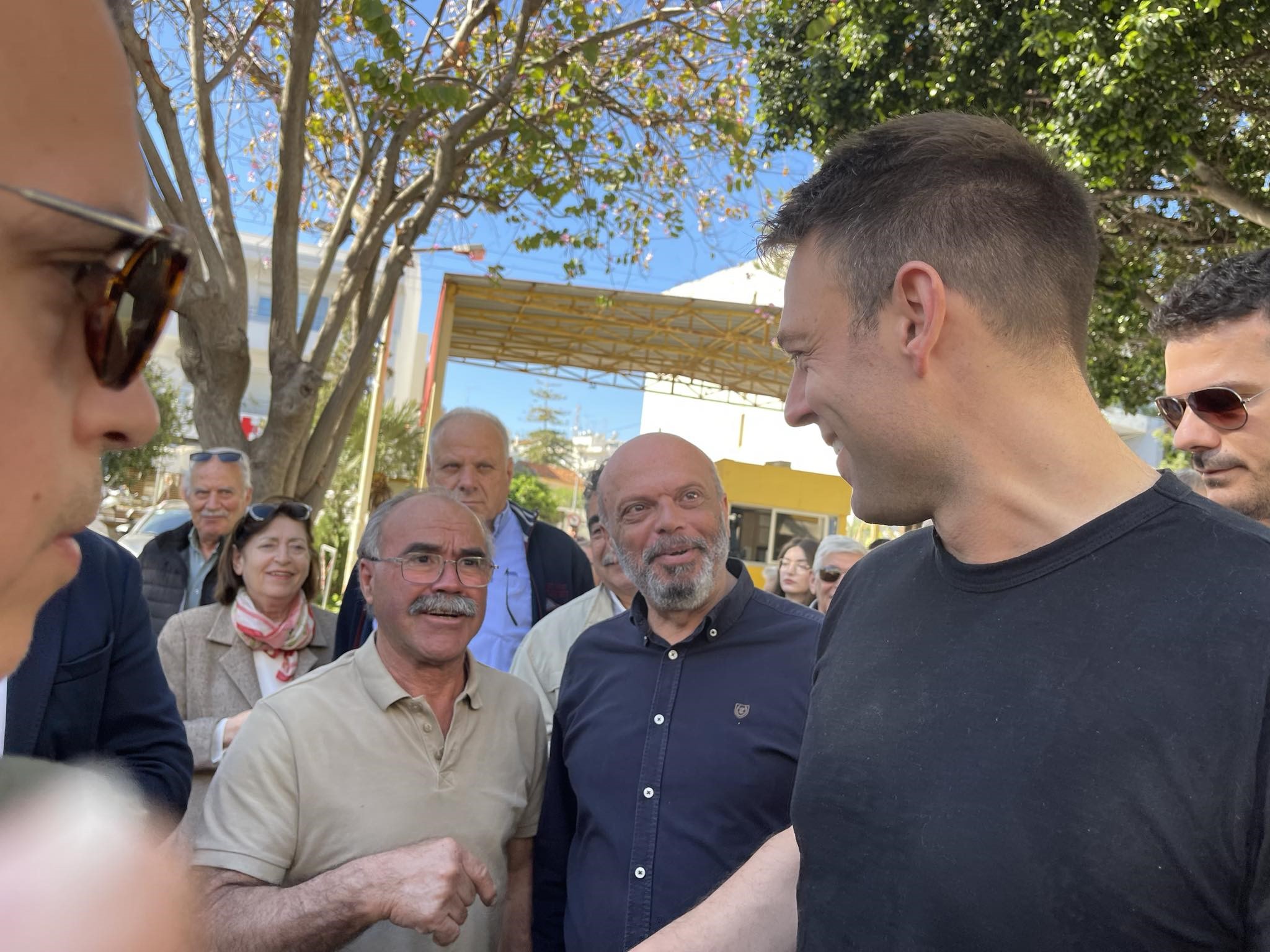 Μετά το πέρας της επίσκεψης του στο νοσοκομείο ο Στέφανος Κασσελάκης επισκέφθηκε την κεντρική αγορά της πόλης, στην οποία συνάντησε καταστηματάρχες και πολίτες.