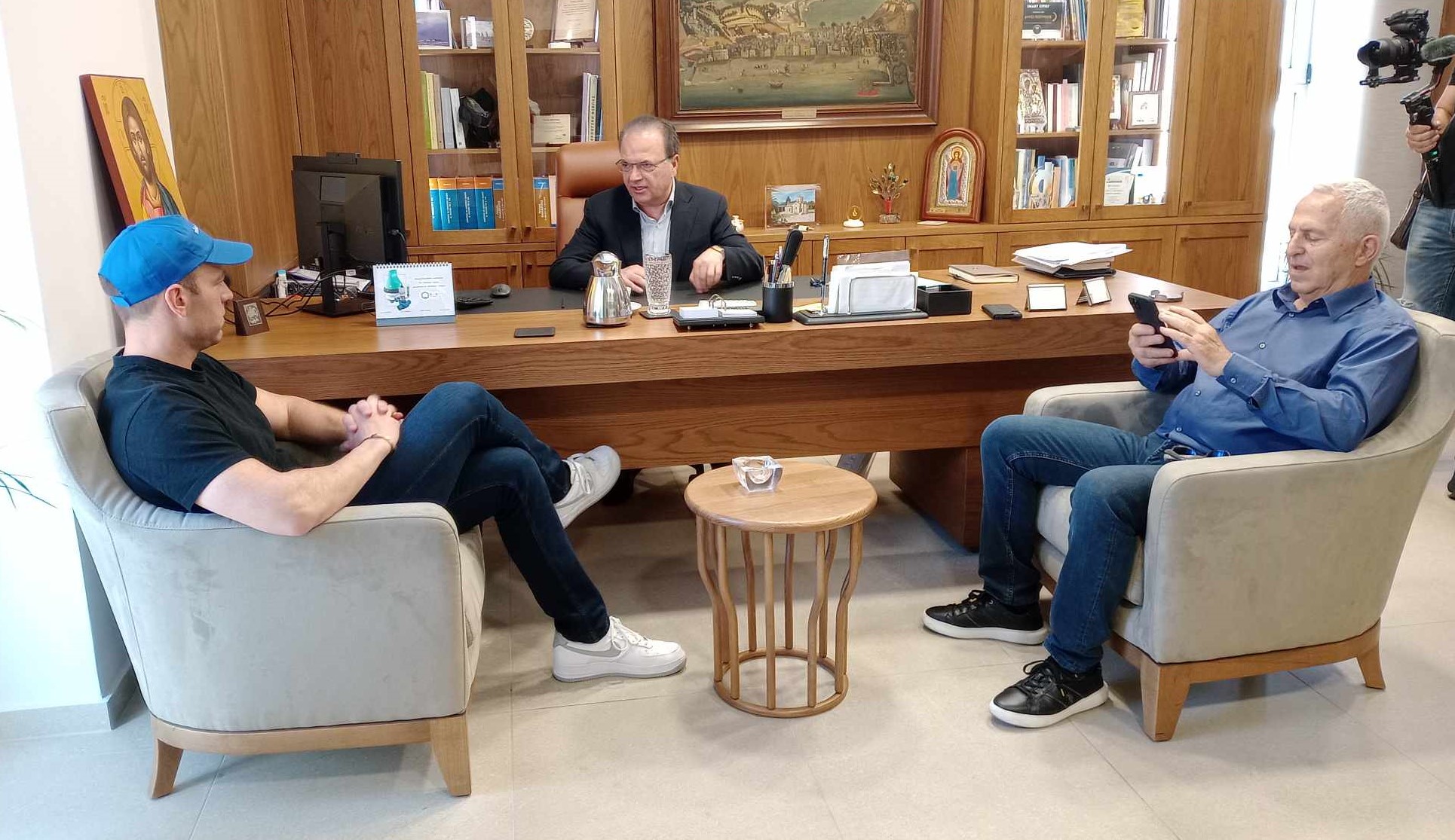 Αφού ξεναγήθηκε στην παλιά πόλη ο Πρόεδρος του ΣΥΡΙΖΑ - ΠΣ πραγματοποίησε σύντομη συνάντηση με τον Δήμαρχο Ρεθύμνης κ. Γιώργη Μαρινάκη στο Δημαρχείο, οπότε και ολοκληρώθηκε η επίσκεψη του στην πόλη του Ρεθύμνου.