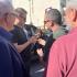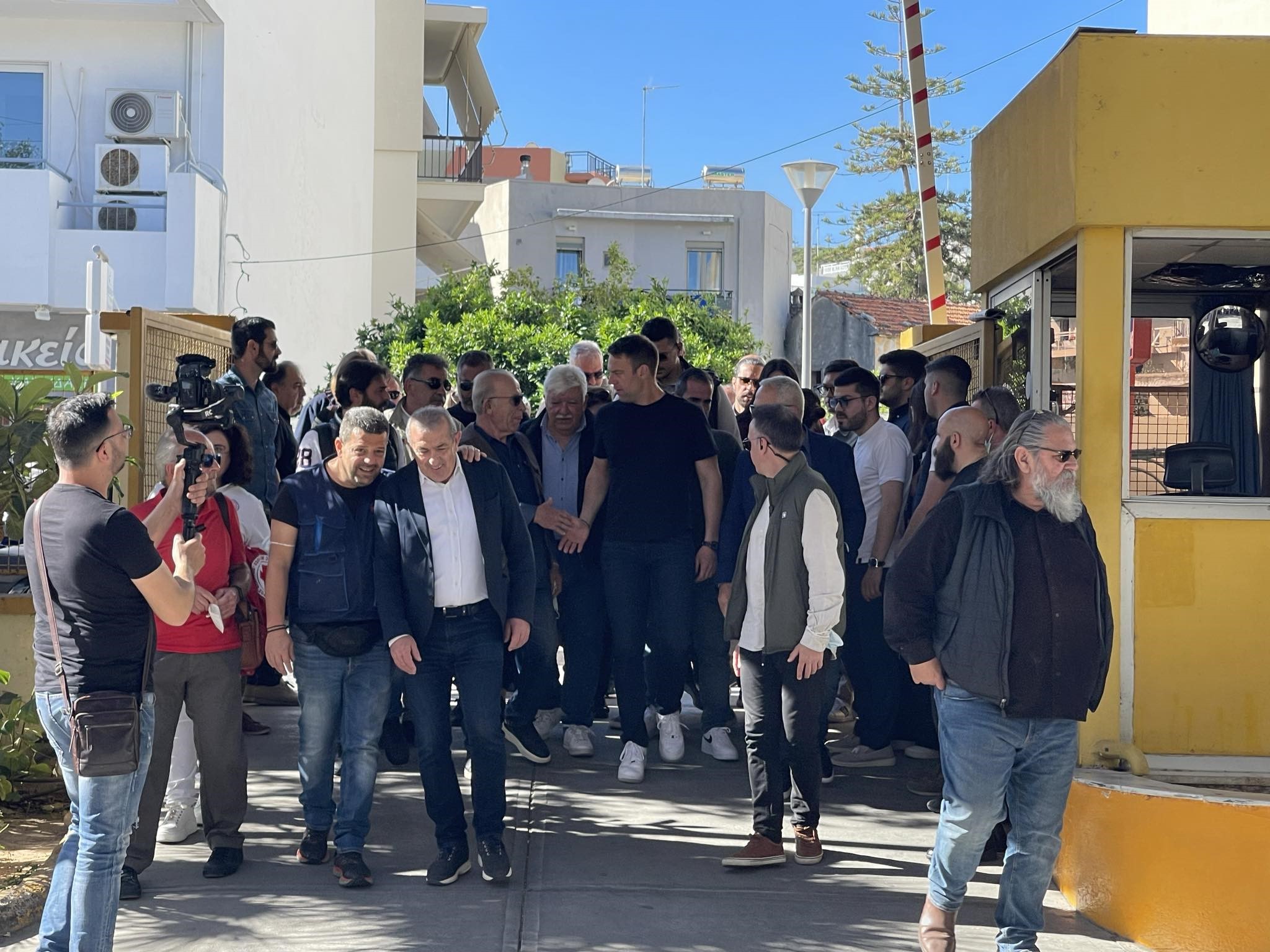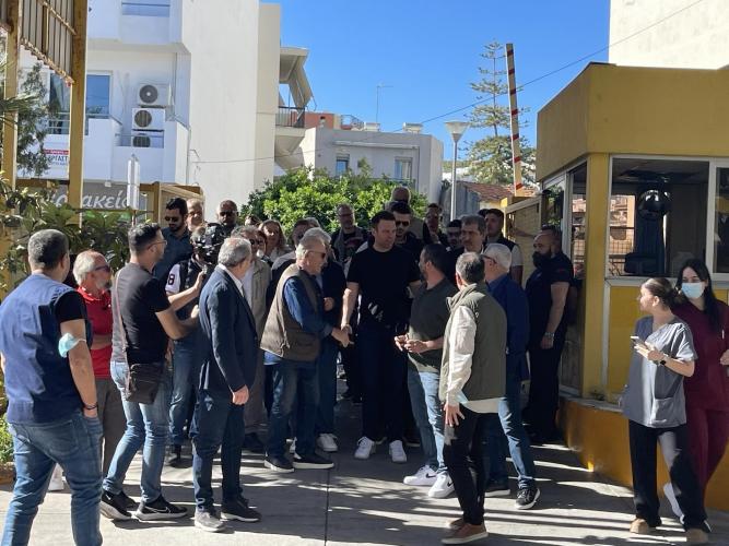 Στην είσοδο του Νοσοκομείου ήταν οι Βουλευτές Ευάγγελος Αποστολάκης και Παύλος Πολάκης, στελέχη της τοπικής Νομαρχιακής Επιτροπής όπως ο Θοδωρής Δουλουμπέκης και ο Μανώλης Αυγενάκης και πολλά στελέχη του κόμματος.