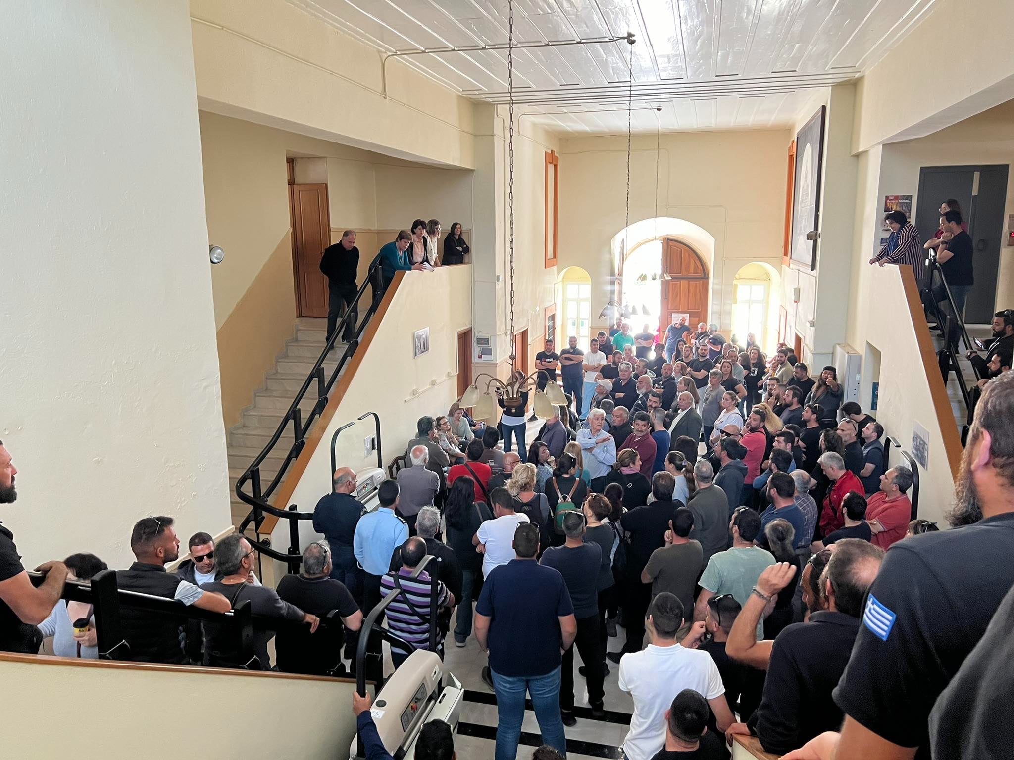 Οι συγκεντρωμένοι αφού δήλωσαν με την παρουσία τους έξω από τα δικαστήρια την στήριξη τους στην μηνυτήρια αναφορά, προχώρησαν και μπήκαν στο μέγαρο της Αντιπεριφέρειας, όπου ζήτησαν να δουν την Αντιπεριφερειάρχη κ. Μαρία Λιονή. Ωστόσο, η κ. Λιονή απουσίαζε στο Ηράκλειο, όπου συμμετείχε σε συνάντηση για το μεταναστευτικό ζήτημα που έγινε παρουσία του αρμόδιου Υπουργού κ. Καιρίδη.