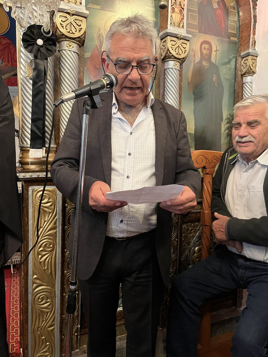 Ο Σεβασμιώτατος, στην προσλαλιά του, εξέφρασε τη χαρά του, διότι ακόμη τα χωριά και οι κοινότητές μας κρατούν, σε τούτους τους δύσκολους καιρούς, την πατρώα πίστη και ευσέβεια, τη φιλοπατρία και την αγάπη, συνεχάρη τους ανθρώπους, και μάλιστα τα μικρά παιδιά, για τη συμμετοχή τους στο Μέγα Απόδειπνο, και ευχήθηκε σε όλους καλό και αίσιο το ερχόμενο Άγιο Πάσχα και Καλή Ανάσταση.