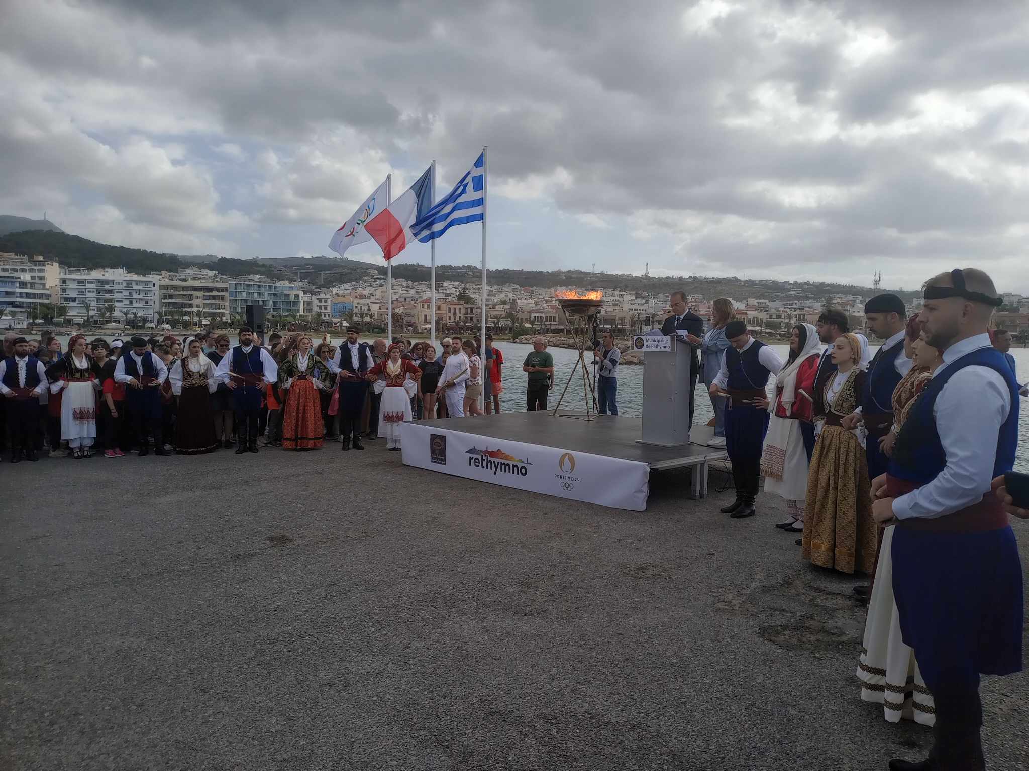 Την Ολυμπιακή Φλόγα στο Ρέθυμνο υποδέχθηκε ο Δήμαρχος Ρεθύμνης κ. Γιώργης Μαρινάκης, ο οποίος στον χαιρετισμό του είπε τα εξής:
