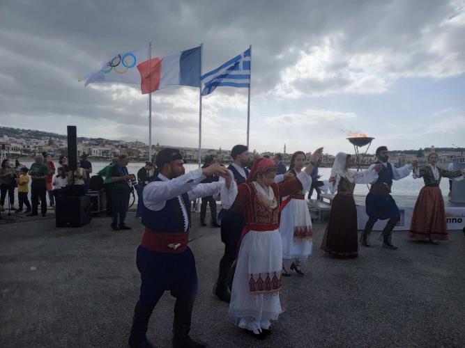 Η τελετή υποδοχής της Ολυμπιακής Φλόγας στο Ρέθυμνο ξεκίνησε με την παραλαβή της Φλόγας από 1ο λαμπαδηδρόμο στη λεωφόρο Σοφ. Βενιζέλου και ακολούθησε εναλλαγή λαμπαδηδρόμων σε άλλες 3 θέσεις μέχρι την μαρίνα Ρεθύμνου.