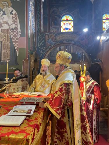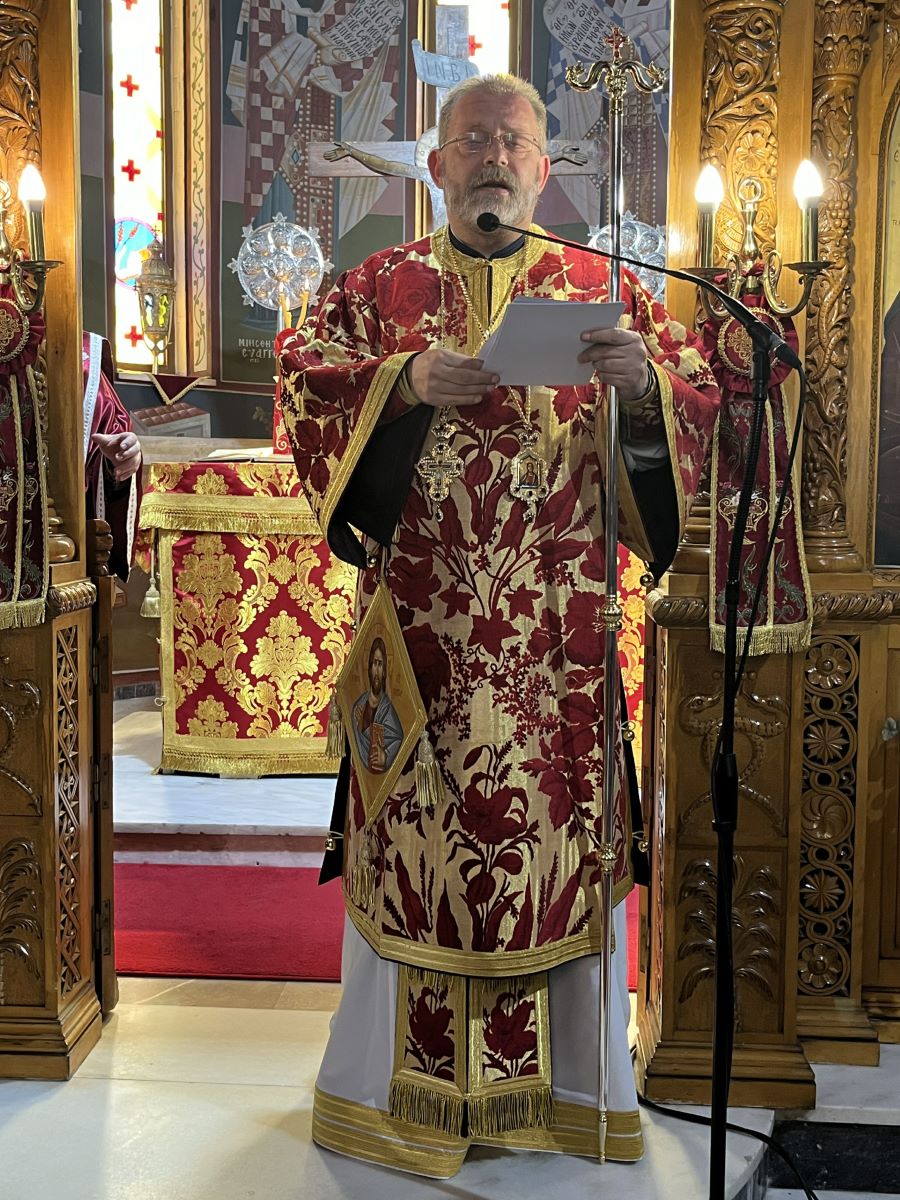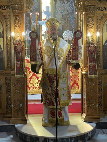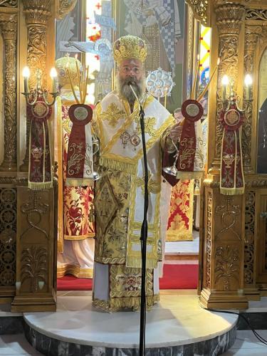 Προ της απολύσεως της Θείας Λειτουργίας, ο Σεβασμιώτατος Ποιμενάρχης μας καλωσόρισε και παρουσίασε στο εκκλησίασμα με θερμούς λόγους τον Σεβασμιώτατο άγιο Σελευκείας, αναφερόμενος στην πολυετή προσφορά του στη Μητέρα μας Εκκλησία, το Πάνσεπτο Οικουμενικό Πατριαρχείο, παρά τους πόδας του Παναγιωτάτου Οικουμενικού μας Πατριάρχου κ.κ. ΒΑΡΘΟΛΟΜΑΙΟΥ, από θέσεων ευθύνης, όπως αυτές του Μεγάλου Αρχιδιακόνου και του Μεγάλου Πρωτοσυγκέλλου, καθώς και στο γεγονός ότι υπηρετεί ως Καθηγητής στην Πατριαρχική Ανωτάτη Εκκλησιαστική Ακαδημία Κρήτης. Ο Επίσκοπός μας συνεχάρη και επ’ εκκλησίας τον Σεβασμιώτατο κ. Θεόδωρο για την πρόσφατη επάξια εκλογή και χειροτονία του σε Μητροπολίτη Σελευκείας.