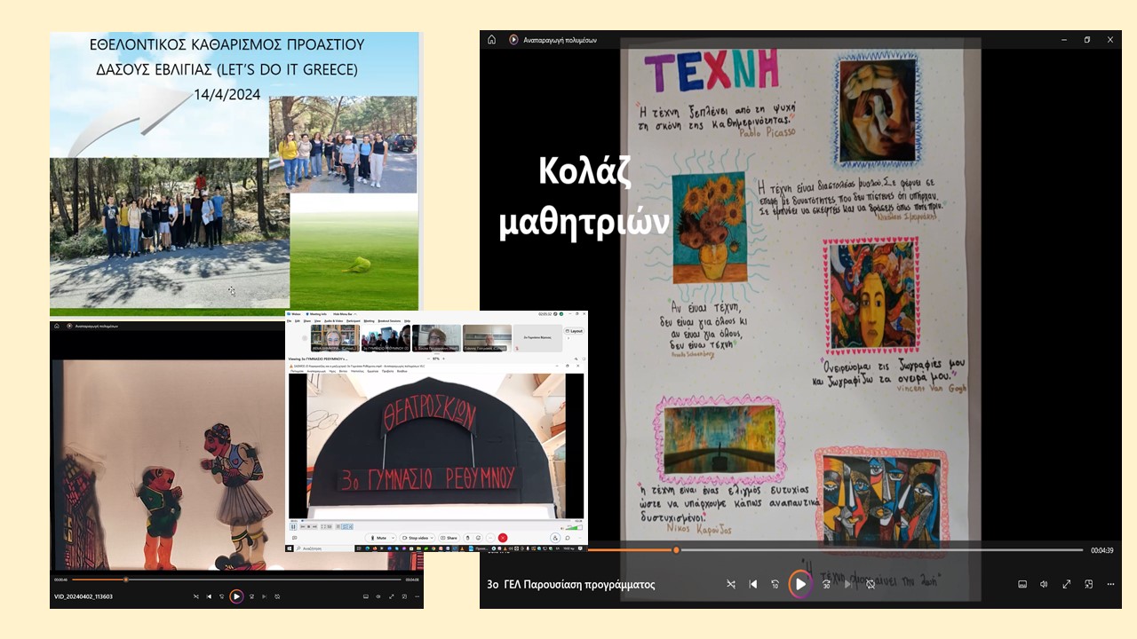 - Την Τρίτη 16 Απριλίου 2024 παρουσίασαν ομάδες από τα Σχολεία: Ε.Ε.Ε.Ε.Κ. Ρεθύμνου, Ε.Ε.Ε.Ε.Κ. Νάουσας, 3ο Ημερήσιο Γυμνάσιο Ρεθύμνου, 1ο Γυμνάσιο Ναυπλίου, 3ο Ημερήσιο ΓΕ.Λ. Ρεθύμνου, 2ο Γυμνάσιο Ναυπλίου, 6ο Γυμνάσιο Βέροιας, Μουσικό Σχολείο Αργολίδας, Πειραματικό ΓΕ.Λ. Ρεθύμνου, ΕΠΑ.Λ. Αλεξάνδρειας, 2ο Γυμνάσιο Νάουσας & Λάππειο-1ο Γυμνάσιο Νάουσας, Αλεξάνδρειο-2ο Γυμνάσιο Βέροιας.