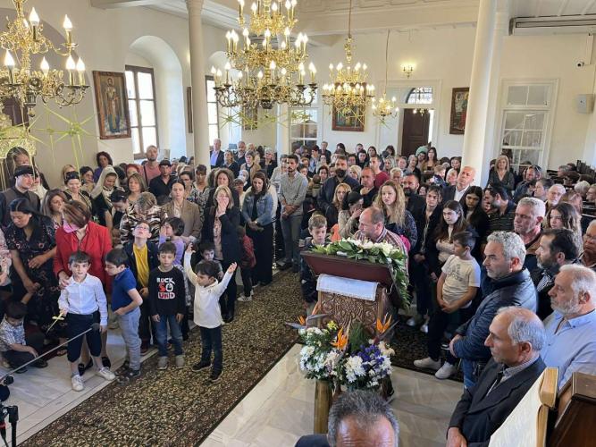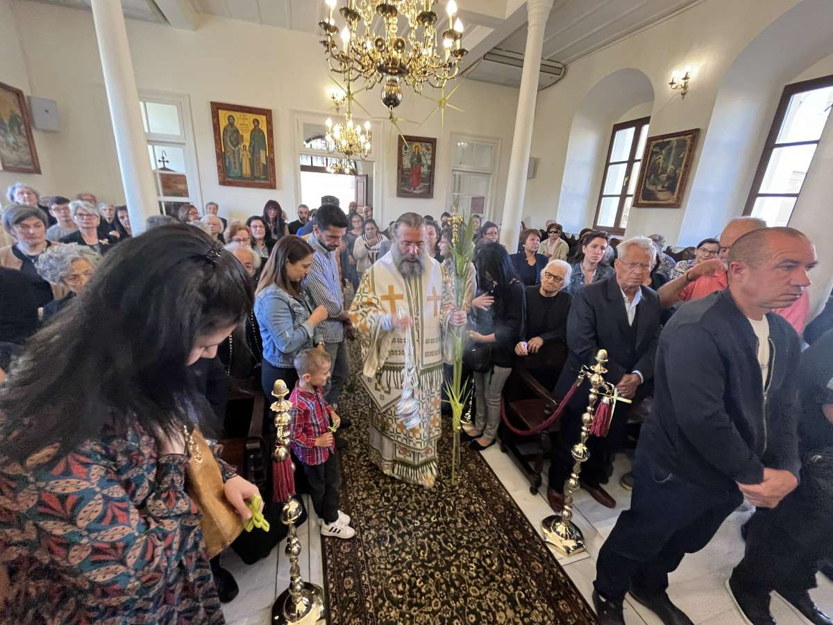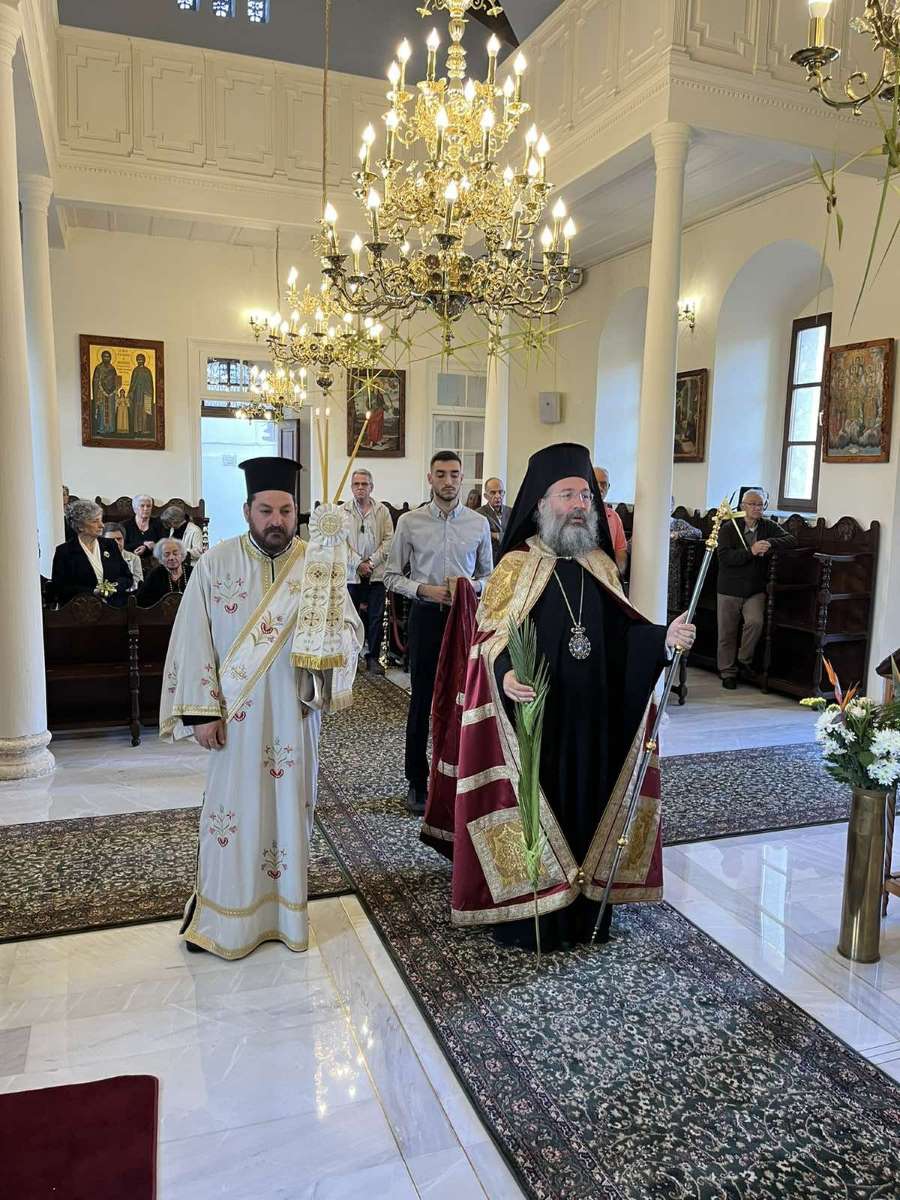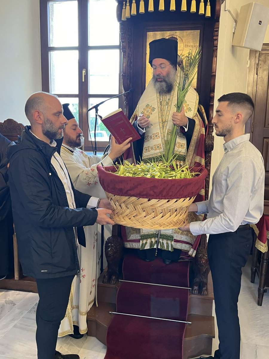 Το πρωί της Κυριακής των Βαΐων, 28ης Απριλίου 2024, ο Σεβασμιώτατος Μητροπολίτης Ρεθύμνης και Αυλοποτάμου κ. Πρόδρομος χοροστάτησε κατά τον Όρθρο και στη συνέχεια τέλεσε Αρχιερατική Θεία Λειτουργία στον Ιερό Ναό Αγίου Ελευθερίου Ατσιποπούλου, συμπαραστατούμενος υπό του Εφημερίου της Ενορίας, Αιδεσ. Πρωτ. Μιχαήλ Μυστράκη.