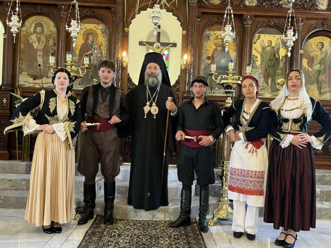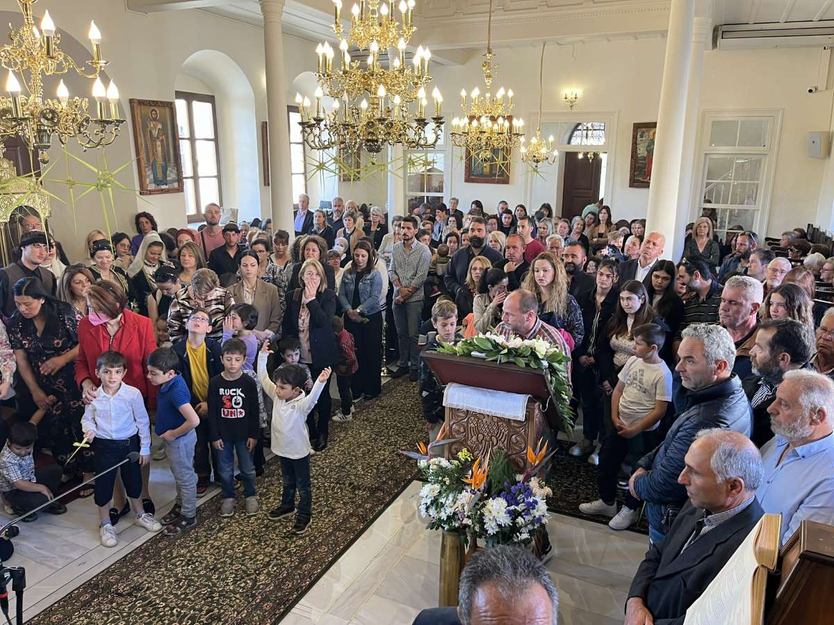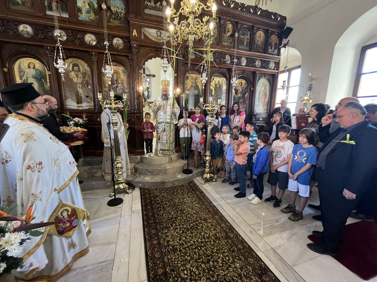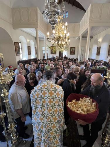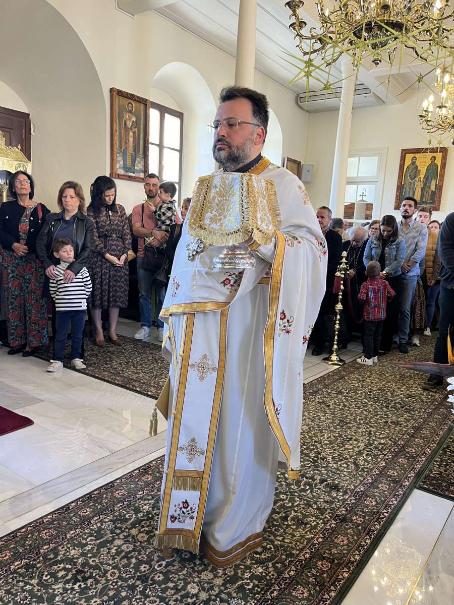 Προ της απολύσεως της Θείας Λειτουργίας, ο π. Μιχαήλ καλωσόρισε τον Σεβασμιώτατο με θερμούς λόγους, εκφράζοντας τη συγκίνησή του, διότι ο Σεβασμιώτατος τέλεσε την πρώτη Λειτουργία μετά την πρόσφατη ανακαίνιση του Ιερού Ναού, και εξέφρασε θερμές ευχαριστίες προς όλους, όσοι συμπαραστάθηκαν στο μεγάλο αυτό έργο.