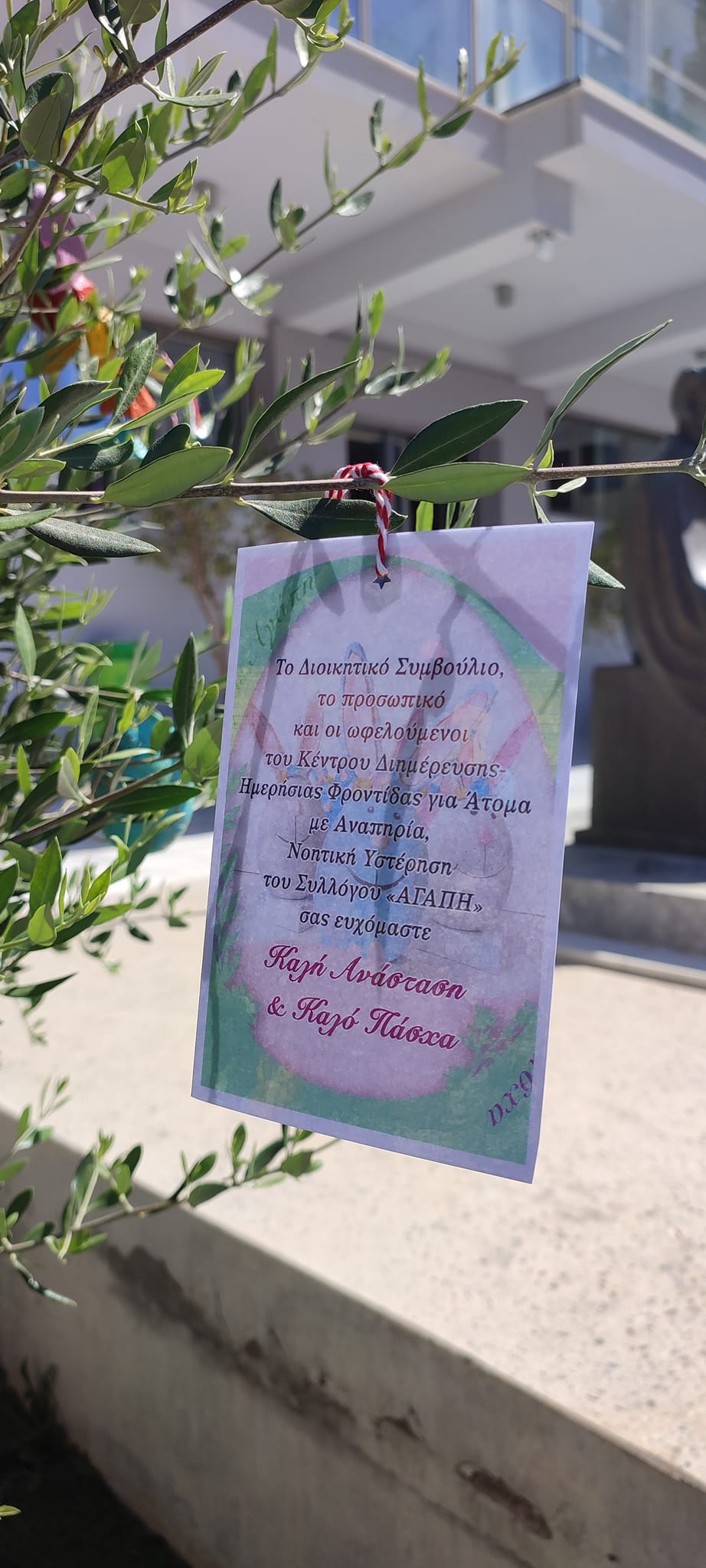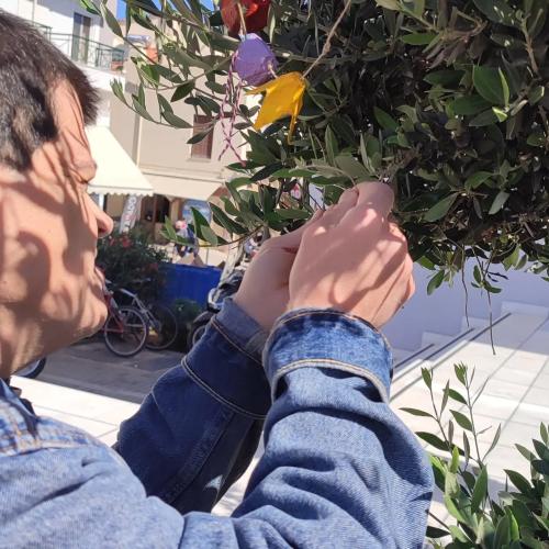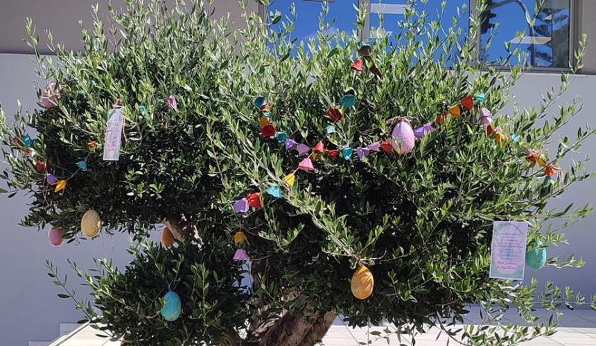 Μια ομάδα παιδιών από το Σύλλογο Αγάπη βρέθηκαν την περασμένη Παρασκευή μαζί με τους εκπαιδευτές τους, έξω από δήμο Ρεθύμνου και στόλισαν Πασχαλινά τη μικρή ελιά που βρίσκεται εκεί, τοποθετώντας χρωματιστά αυγουλάκια και γιρλάντες. «Την βοηθάμε ν’ αλλάζει κάθε φορά, ανάλογα με την περίοδο και είναι μια διαδικασία που πραγματικά απολαμβάνουμε», έγραψαν οι εκπαιδευτές στα μέσα κοινωνικής δικτύωσης, παρουσιάζοντας συγχρόνως το χαριτωμένο αποτέλεσμα που πέτυχαν τα παιδιά της «Αγάπης».