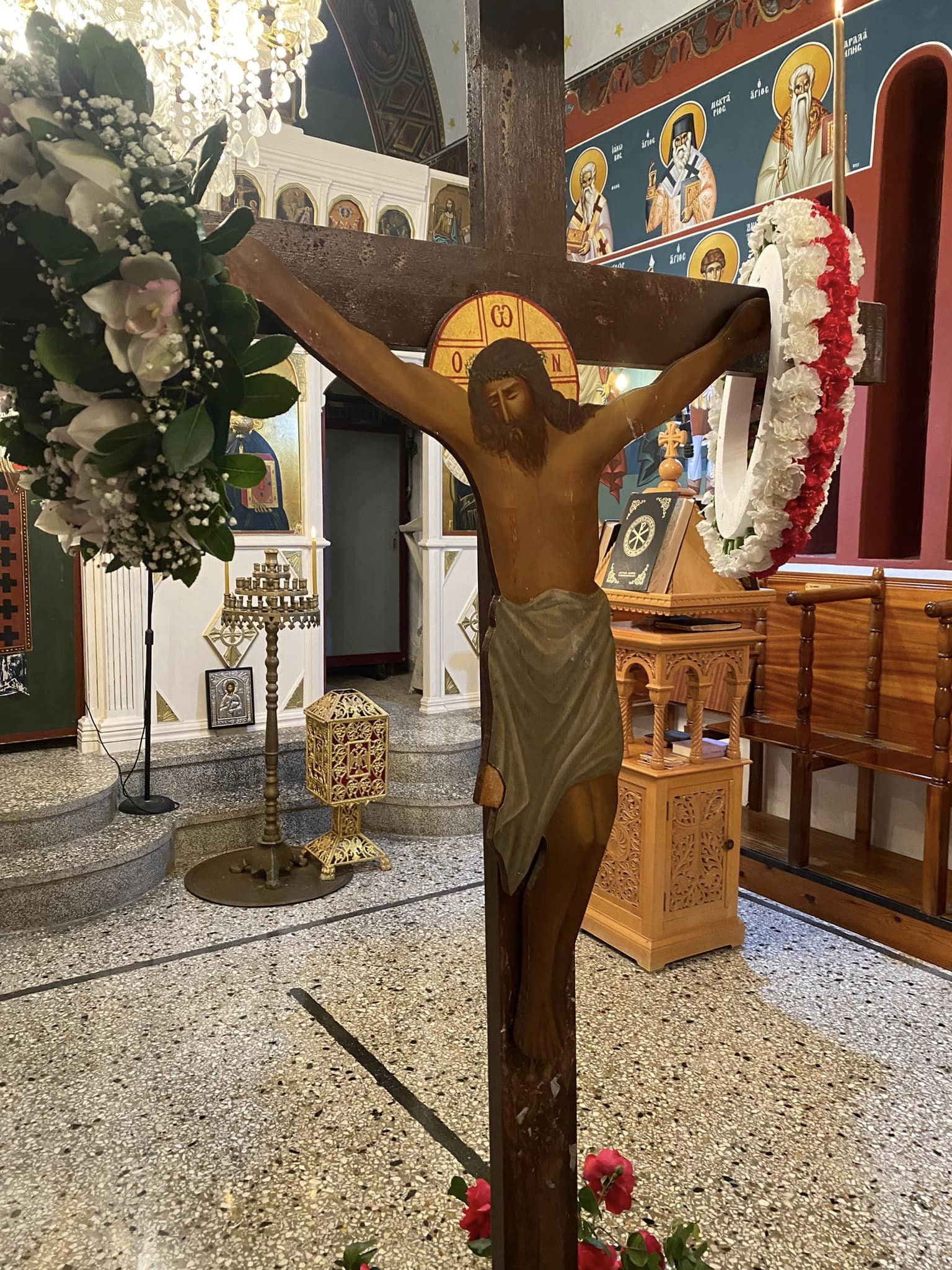 Στον Ιερό Ναό Σωτήρος Χριστού Δαμαβόλου οι πιστοί δεν πίστευαν στα μάτια τους καθώς το μύρο ανάδυε από το σημείο κάτω από τα πόδια του Εσταυρωμένου.