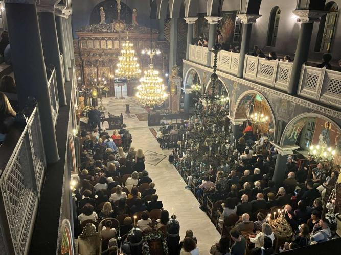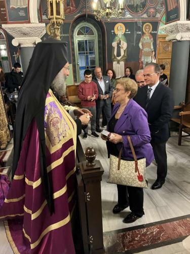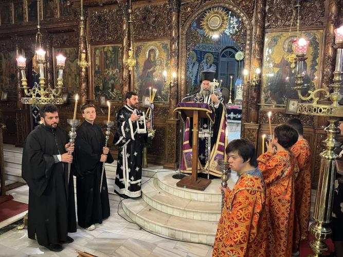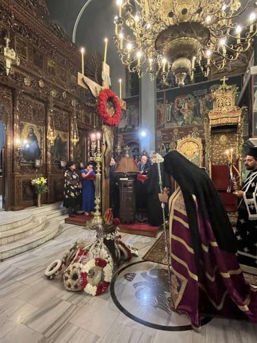 Το απόγευμα της ίδιας ημέρας, ο Σεβασμιώτατος Μητροπολίτης μας χοροστάτησε κατά την Ακολουθία των Αγίων και Αχράντων Παθών στον Ιερό Μητροπολιτικό Ναό Εισοδίων της Θεοτόκου πόλεως Ρεθύμνης και ευχήθηκε προς τους πολυπληθείς προσκυνητές να λάβουν δύναμη στην άρση του προσωπικού τους σταυρού από τον Μεγάλο Εσταυρωμένο, ο Οποίος δωρίζει προς όλους την Ανάσταση. Εκκλησιάσθηκαν, μεταξύ άλλων, η Αντιπεριφερειάρχης Ρεθύμνου κ. Μαίρη Λιονή, ο Δήμαρχος Ρεθύμνης κ. Γεώργιος Μαρινάκης, ο Ομότιμος Καθηγητής της Ιατρικής Σχολής του Πανεπιστημίου Κρήτης κ. Χρήστος Λιονής και ο Διοικητής του Τάγματος Εθνοφυλακής Ρεθύμνου, Αντισυνταγματάρχης κ. Γεώργιος Σφηναρόλης.