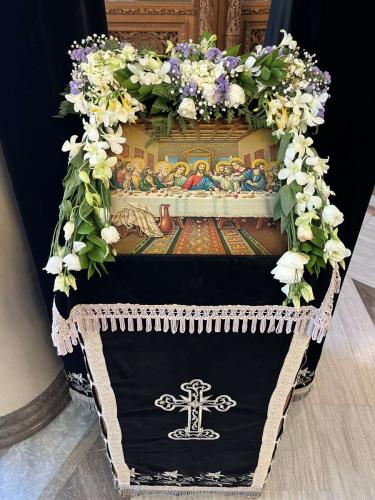 Το πρωί της Μεγάλης Πέμπτης, 2ας Μαΐου 2024, ο Σεβασμιώτατος Μητροπολίτης Ρεθύμνης και Αυλοποτάμου κ. Πρόδρομος τέλεσε την Αρχιερατική Θεία Λειτουργία στον Ιερό Ενοριακό Ναό Κοιμήσεως της Θεοτόκου Μασταμπά πόλεως Ρεθύμνης, συμπαραστατούμενος υπό των Αιδεσιμολ. Πρωτ. Νικολάου Πολάκη και Γεωργίου Παττακού, και ευχήθηκε καταλλήλως προς το εκκλησίασμα καλή Ανάσταση, αναφερόμενος στην παράδοση του Μυστηρίου της Θείας Ευχαριστίας.
