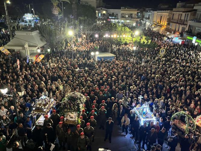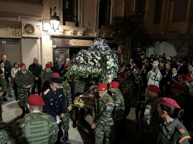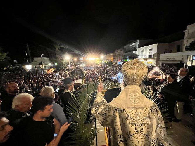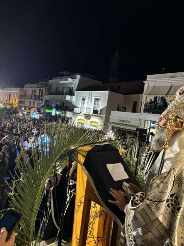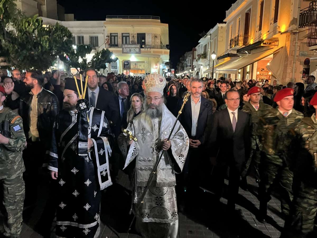 Ακολούθως, πραγματοποιήθηκε η συνάντηση των Επιταφίων στην Πλατεία των Αγίων Τεσσάρων Μαρτύρων, όπου ο Σεβασμιώτατος απηύθυνε σύντομο μήνυμα, προτρέποντας όλους να αγωνισθούμε εναντίον κάθε μορφής βίας, η οποία κατατρύχει τη ζωή και την καθημερινότητά μας, και να μιμηθούμε το Μεγάλο Εσταυρωμένο, ο Οποίος, από του Τάφου Του, εκπηγάζει Ζωή και Ανάσταση σε εκείνους που αληθινά πιστεύουν σε Αυτόν.