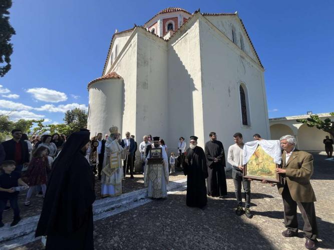 Το πρωί της Δευτέρας της Διακαινησίμου, 6ης Μαΐου 2024, ο Σεβασμιώτατος Μητροπολίτης Ρεθύμνης και Αυλοποτάμου κ. Πρόδρομος μετέβη στην πανηγυρίζουσα Ιερά Πατριαρχική και Σταυροπηγιακή Μονή Αγίου Γεωργίου Αρσανίου, όπου τέλεσε την Αρχιερατική Θεία Λειτουργία, συμπαραστατούμενος υπό του Καθηγουμένου, Πανοσιολ. Αρχιμ. Ευφραίμ Μανουσάκη, και άλλων κληρικών και με τη συμμετοχή πλήθους πιστών, μεταξύ των οποίων ο Θεματικός Αντιπεριφερειάρχης στον τομέα Επιχειρηματικότητας κ. Μιχάλης Βάμβουκας και οι Αντιδήμαρχοι του Δήμου Ρεθύμνης κ. Νεκτάριος Παπαδογιάννης και κ. Γεώργιος Σκορδίλης.