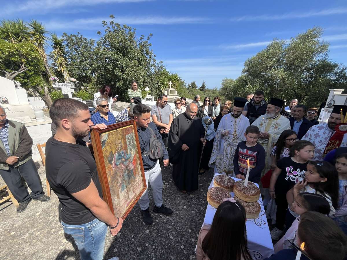 Προ της απολύσεως της Θείας Λειτουργίας, τελέσθηκε ιερά λιτάνευση της Ιεράς Εικόνος του Αγίου Αποστόλου και Ευαγγελιστού Ιωάννου του Θεολόγου πέριξ του Ιερού Ναού, η ευλόγηση των άρτων, καθώς και επιμνημόσυνη δέηση για τους ορθοδόξους χριστιανούς που αναπαύονται στο εν λόγω Ιερό Κοιμητήριο.