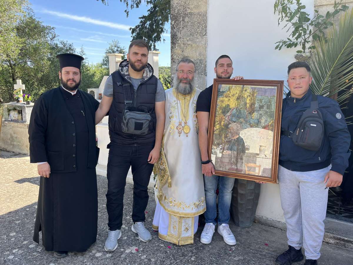 Τον Σεβασμιώτατο καλωσόρισε ο Εφημέριος της Ενορίας, Αιδεσιμ. π. Εμμανουήλ Σπυρλιδάκης, και του προσέφερε, εκ μέρους της Ενορίας και της Κοινότητος, Ιερά Εικόνα, βιβλίο με την ιστορία του Κάτω Πόρου και καλάθι με παραδοσιακά προϊόντα του τόπου.