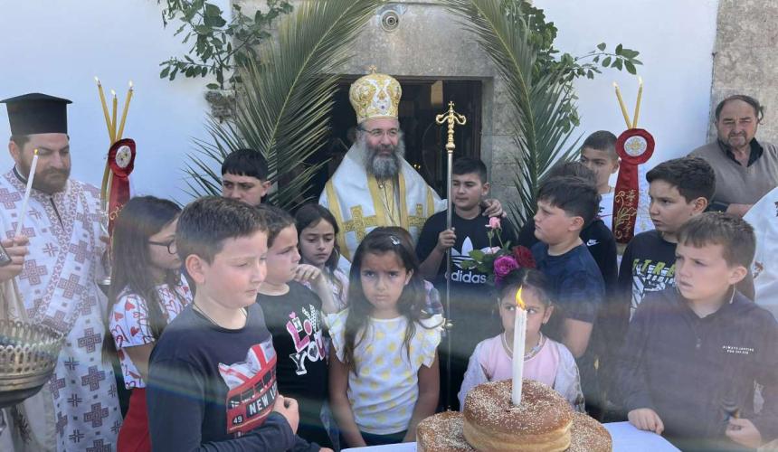 Ο Σεβασμιώτατος, στην ομιλία του, αναφέρθηκε στη κεντρική Εορτή της Πίστεώς μας, την Ανάσταση του Κυρίου μας Ιησού Χριστού, καθώς και στα μηνύματα του Ευαγγελιστού της Αγάπης και Επιστηθίου Φίλου του Κυρίου μας, Αγίου Ιωάννου του Θεολόγου. Ο Επίσκοπός μας χαιρέτισε τη συμμετοχή των ανθρώπων και ιδιαίτερα του μεγάλου αριθμού μικρών παιδιών στη λατρευτική σύναξη της Εκκλησίας.