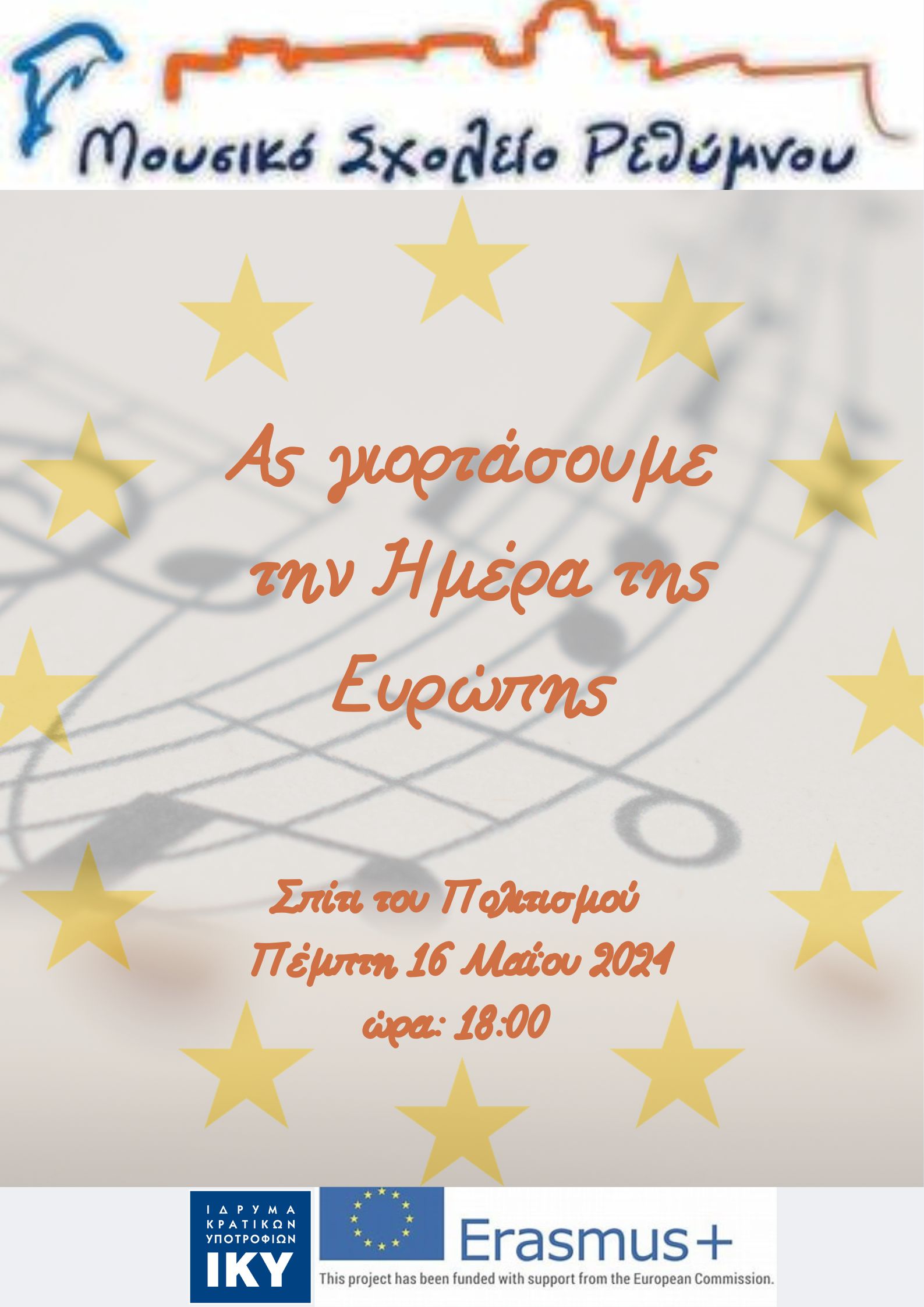 ΡΕΘΥΜΝΟ 13.05.2024 12:35Εκδήλωση από το Μουσικό σχολείο Ρέθεμνος Newsroom Facebook Twitter Copy link 0 Mε αφορμή την Ημέρα της Ευρώπης και στα πλαίσια της διάχυσης των κινητικοτήτων Erasmus+ το Μουσικό Σχολείο Ρεθύμνου σας προσκαλεί στην εκδήλωση που θα πραγματοποιηθεί στο «Σπίτι του Πολιτισμού», την Πέμπτη 16 Μαΐου 2024 και ώρα 18:00. 0 Facebook Twitter Copy link ΣΧΕΤΙΚΑ ΑΡΘΡΑ Ρέθυμνο 21.12.2025 18:48Ρέθυμνο: Στην αιωνιότητα η Αργυρώ Πατσαχάκη Ρέθυμνο 21.12.2025 16:30Ρέθυμνο: Συνελήφθησαν έξι άτομα για συμμετοχή σε παράνομα τυχερά παιχνίδια Ρέθυμνο 21.12.2025 11:50Ρέθυμνο: Ανοιχτά τα καταστήματα την Κυριακή - Δείτε το εορταστικό ωράριο της αγοράς Ρέθυμνο 21.12.2025 11:36Ρέθυμνο: "Πονοκέφαλος" οι μεταναστευτικές ροές - Αύριο φεύγουν οι πρώτοι 350 από την Κιτρένωση