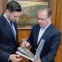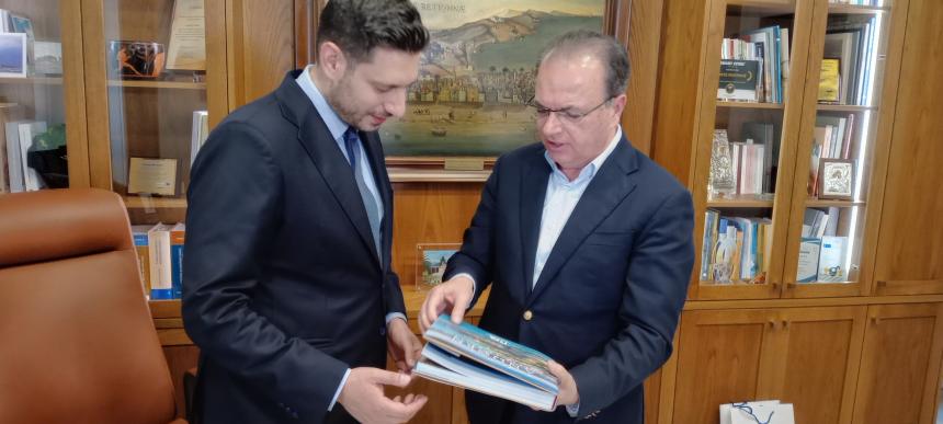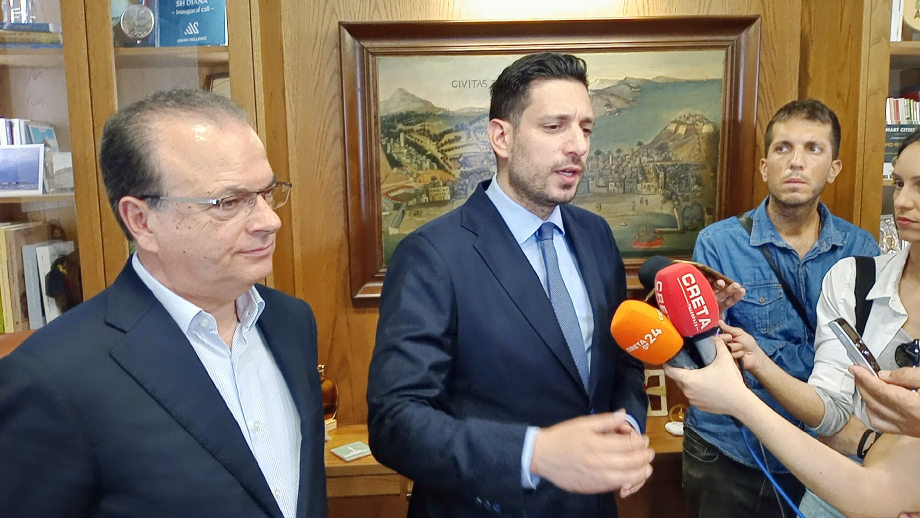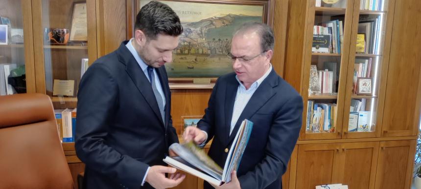 Μετά το πέρας των δηλώσεων ο κ. Μαρινάκης χάρισε στον κ. Κυρανάκη μια συλλεκτική έκδοση με γκραβούρες του Ρεθύμνου καθώς και ένα φωτογραφικό λεύκωμα με φωτογραφίες από όλη την Κρήτη.