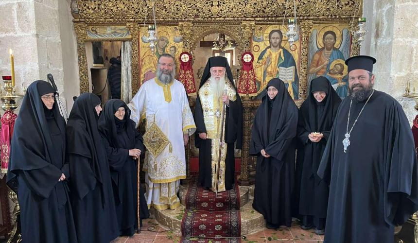 Το πρωί της Κυριακής του Θωμά, 12ης Μαΐου 2024, κατόπιν ευγενικής προσκλήσεως του Σεβασμιωτάτου Μητροπολίτου Λάμπης, Συβρίτου και Σφακίων κ. Ειρηναίου, ο Σεβασμιώτατος Μητροπολίτης Ρεθύμνης και Αυλοποτάμου κ. Πρόδρομος μετέβη στην ιστορική Ιερά Μονή Ασωμάτων Αμαρίου Ρεθύμνης, όπου, στο Καθολικό των Αγίων Ταξιαρχών, χοροστάτησε κατά τον Όρθρο και τέλεσε την Αρχιερατική Θεία Λειτουργία, συμπροσευχομένου από του Ιερού Βήματος του οικείου Ποιμενάρχου, Σεβασμιωτάτου κ. Ειρηναίου.
