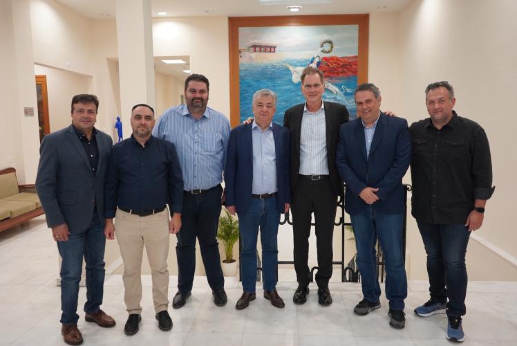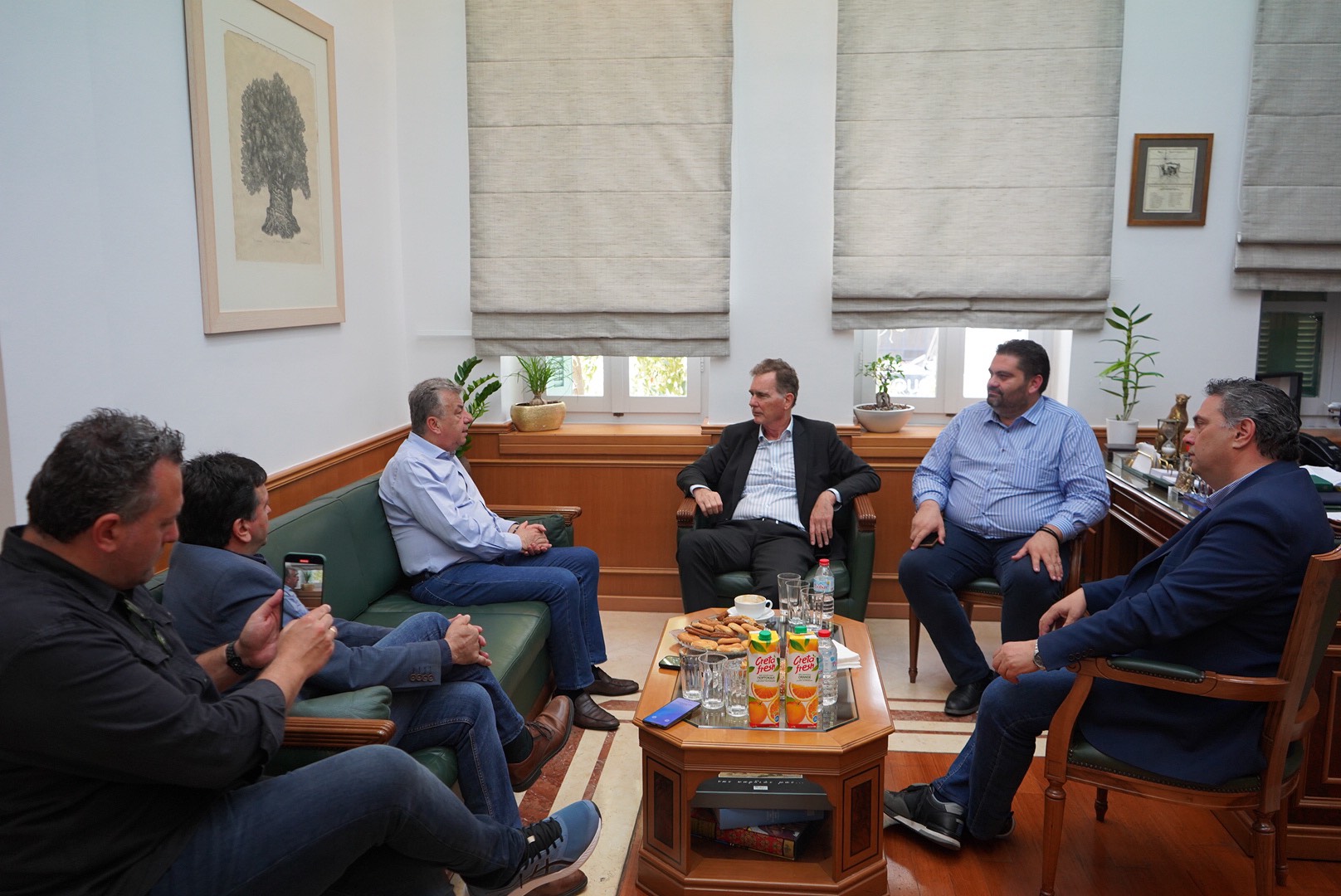 Στη συνάντηση, από την Περιφέρεια μετείχαν ο Αναπληρωτής Περιφερειάρχης Γιώργος Πιτσούλης, ο Αντιπεριφερειάρχης Ηρακλείου Νίκος Συριγωνάκης καθώς και ο Αντιπεριφερειάρχης Αγροτικής Οικονομίας Σταύρος Τζεδάκης.