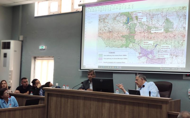 Τέλος, απευθυνόμενος προς τον κ. Ταχιάο για το θέμα των απαλλοτριώσεων, ο Δήμαρχος Αμαρίου τόνισε πως «Επειδή έχει ξεκινήσει η σχετική διαδικασία, πρέπει να ξέρετε ότι η περιοχή που κατακλύζεται είναι η πιο εύφορη περιοχή του Δήμου μας, η οποία ήδη αρδεύεται από τη λιμνοδεξαμενή του ΤΟΕΒ Βυζαρίου και θα πρέπει οι αποζημιώσεις να ανταποκρίνονται στην πραγματική αξία, και όχι στην αντικειμενική που είναι ευτελής. Καταστρέφονται ολοκληρωτικά οικογένειες καθώς στο σύνολο τους οι ιδιοκτησίες τους βρίσκονται εντός της λεκάνης κατάκλισης. Παράλληλα, μια από τις μεγαλύτερες επιχειρήσεις της Κρήτης, ίσως η μεγαλύτερη στον τομέα της, τα Αγροκτήματα Κρήτης – Μανωλιτσάκης Α.Ε., καταστρέφεται ολοσχερώς, καθώς το σύνολο των εγκαταστάσεών της κατακλύζεται, χωρίς να έχει προβλεφθεί ακόμα δαπάνη για την αποζημίωσή της».