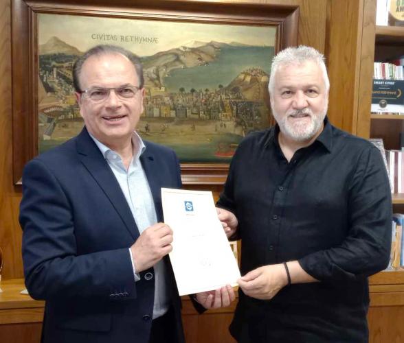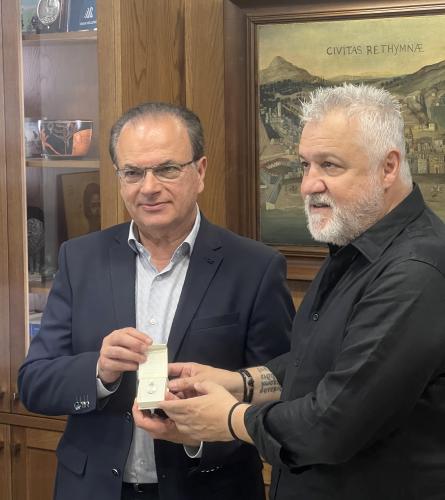 Ο Δήμος Ρεθύμνης τίμησε σήμερα τον επιτυχημένο συγγραφέα κ. Σπύρο Πετρουλάκη, κατά τη διάρκεια συνάντησης που είχε μαζί του ο Δήμαρχος κ. Γιώργης Χ. Μαρινάκη στο Δημαρχείο.