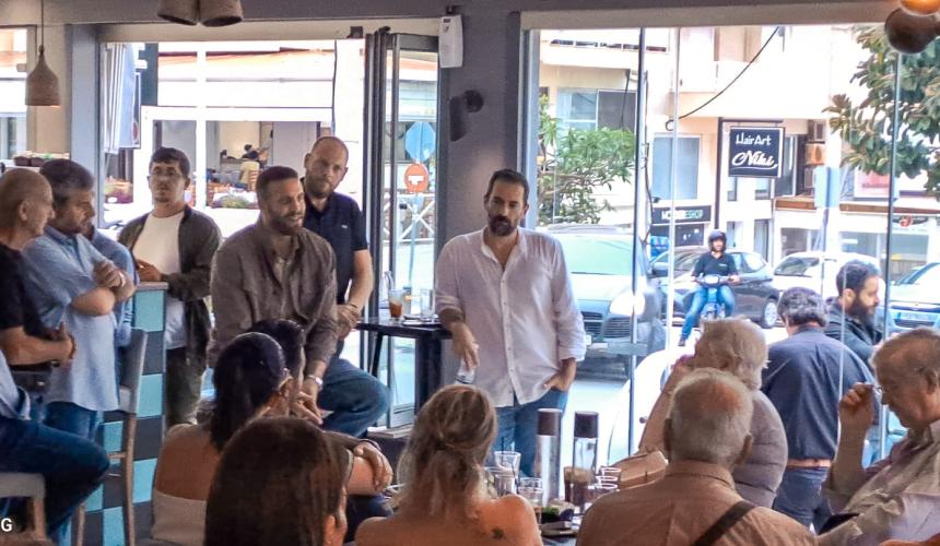 Ο κ. Παππάς αφού ανέφερε ότι είναι σε έναν τόπο που γνωρίζει καλά κι έχει πολλούς φίλους κι ευχάριστες αναμνήσεις είπε: «Στα πλαίσια της περιοδείας μου θέλω να συναντήσω τους ανθρώπους εδώ, να ακούσω τα προβλήματα και τις ανησυχίες τους και να μοιραστώ και εγώ τους προβληματισμούς μου. Να έχουμε μια όμορφη κουβέντα, άλλωστε αυτός είναι ο σκοπός που είμαστε και εδώ».