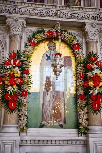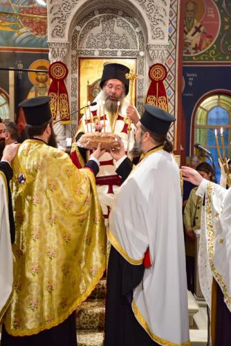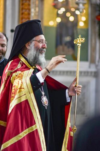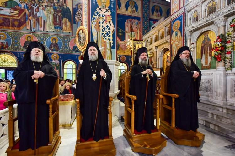 Του Πολυαρχιερατικού Συλλειτούργου της Πανηγύρεως προέστη ο Σεβασμιώτατος Αρχιεπίσκοπος Κρήτης κ. Ευγένιος και έλαβαν μέρος οι Σεβασμιώτατοι Μητροπολίτες Δημητριάδος και Αλμυρού κ. Ιγνάτιος, Κυδωνίας και Αποκορώνου κ. Δαμασκηνός, Θεσσαλιώτιδος και Φαναριοφερσάλων κ. Τιμόθεος, Ιεραπύτνης και Σητείας κ. Κύριλλος, Λαρίσης και Τυρνάβου κ. Ιερώνυμος και Ρεθύμνης και Αυλοποτάμου κ. Πρόδρομος.