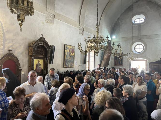 Στη Θεία Λειτουργία έλαβε μέρος ο Πανοσιολογιώτατος Μέγας Ιεροκήρυξ κ. Πανάρετος, ο οποίος, κατ’ αυτάς, συνοδεύει όμιλο πιστών από την Ενορία του Αγίου Ανδρέου του Οικουμενικού μας Πατριαρχείου της Ρωσόφωνης Παροικίας της Πόλεως, με καταγωγή από διάφορες χώρες (Ρωσία, Ουκρανία, Γεωργία, Γαγκαουζία, Μολδαβία), στην οποία διακονεί.