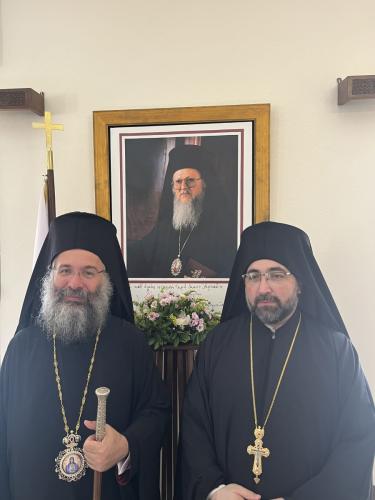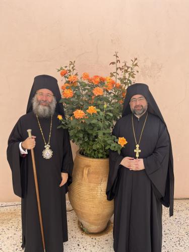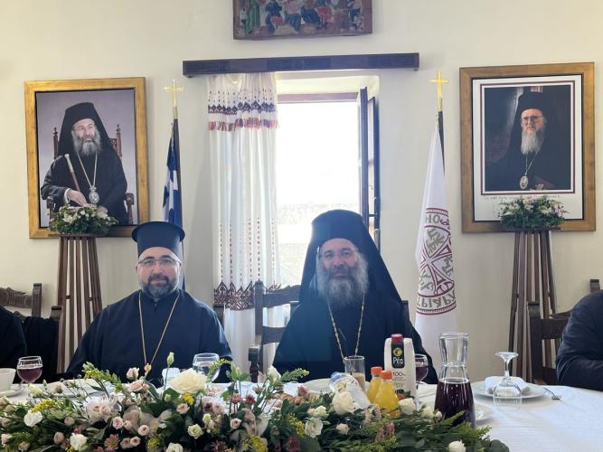 Ο Σεβασμιώτατος καλωσόρισε με θερμούς λόγους τον Πανοσιολογιώτατο Μέγα Ιεροκήρυκα κ. Πανάρετο και τη συνοδεία του, ερχομένους από την του Κωνσταντίνου Πόλη, και ευχήθηκε πάντοτε οι Άγιοι Ισαπόστολοι Κωνσταντίνος και Ελένη να διαφυλάσσουν τη Μητέρα μας Εκκλησία, το Οικουμενικό μας Πατριαρχείο, και τον Σεπτό Προκαθήμενο και Πανάξιο Οιακοστρόφο Αυτής, τον Παναγιώτατο Οικουμενικό μας Πατριάρχη κ.κ. ΒΑΡΘΟΛΟΜΑΙΟ.