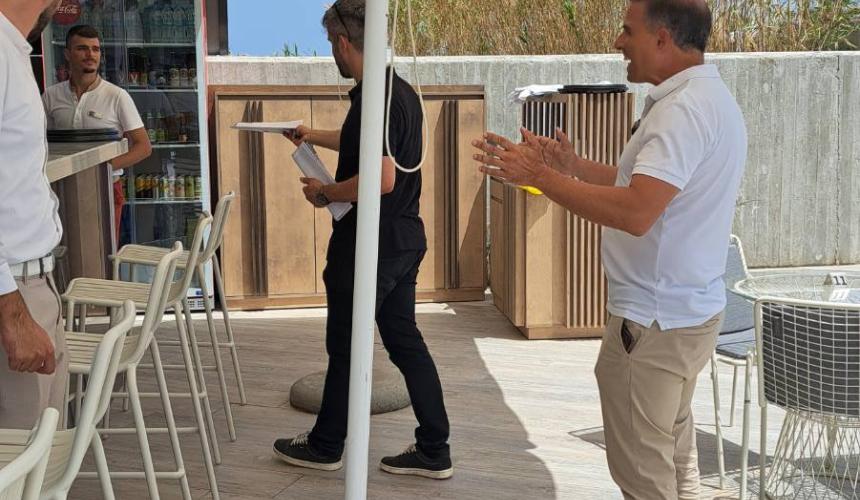 Κατά την επίσκεψη του, ο υποψήφιος ευρωβουλευτής του ΚΚΕ στα ξενοδοχεία, είχε την δυνατότητα να συνομιλήσει με εργαζόμενους του κλάδου που αυτή τη περίοδο και όσο φουντώνει η σεζόν βιώνουν από πρώτο χέρι την ενταντικοποίηση της εποχικής δουλειάς των 5-6 μηνών και μάλιστα με μισθούς που δεν μπορούν να αντιμετωπίσουν την σημερινή ακρίβεια ούτε στο ελάχιστο.