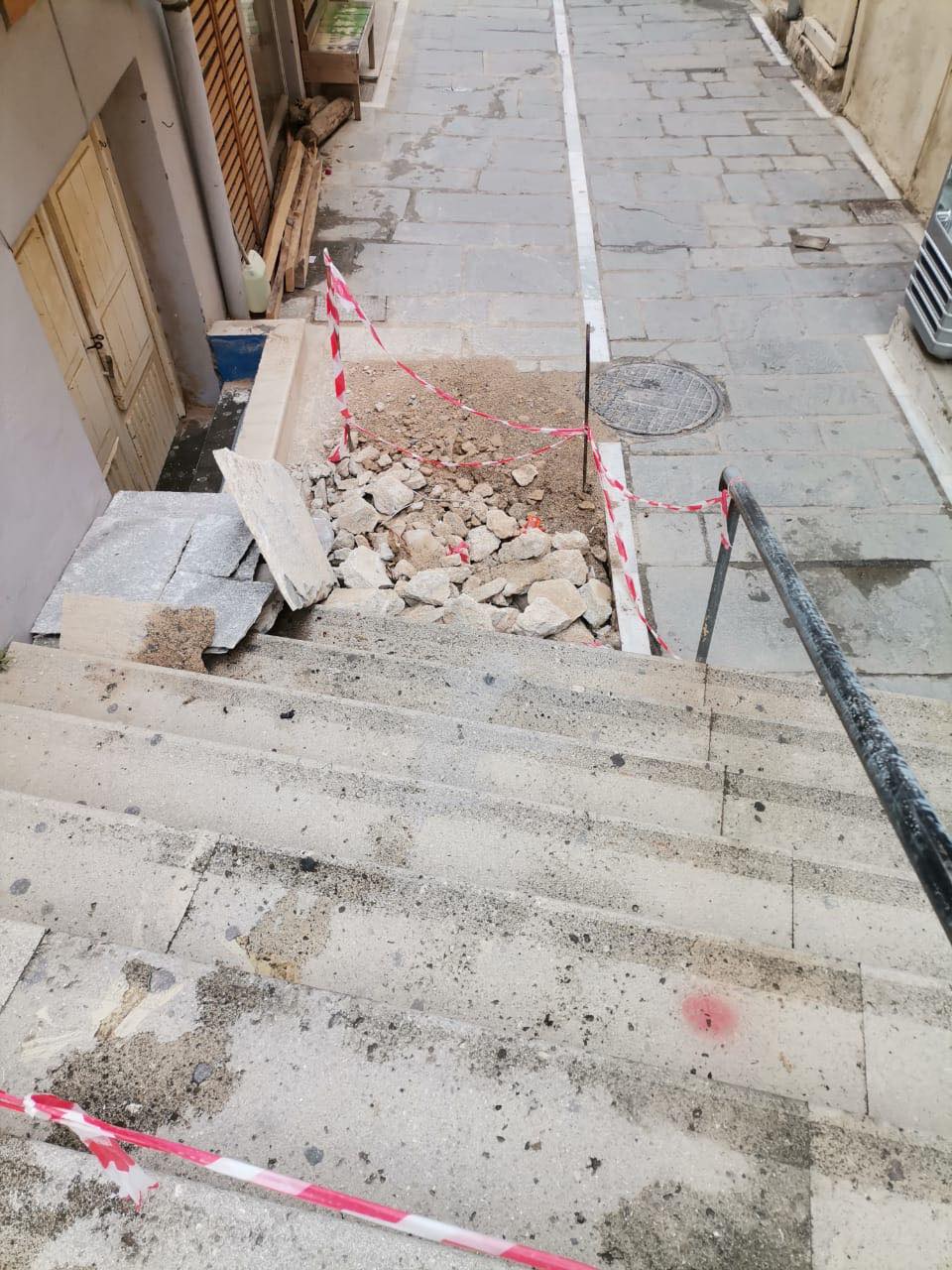 Έτσι μάταια οι κάτοικοι τις περιοχής περιμένουν πάνω από 2 εβδομάδες την αποκατάσταση, ενώ όπως τονίζουν τα σκαλάκια στην οδό Καψάλη δεν είναι πλέον ασφαλή, για κανέναν.