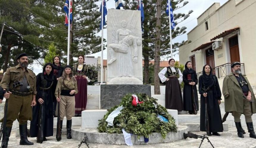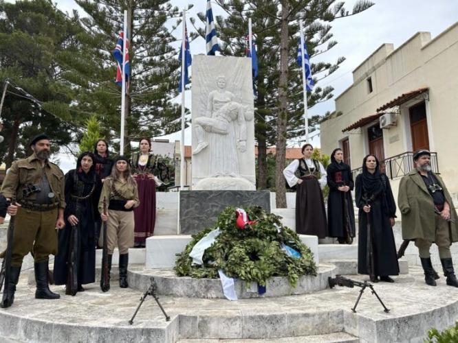 Άνδρες και γυναίκες με παραδοσιακές ενδυμασίες του Ομίλου Βρακοφόρων Κρήτης πλαισίωναν το μνημείο των πεσόντων και οι ¨Ριζίτες¨ του απήγγειλαν ριζίτικα τραγούδια για την επέτειο της Μάχης της Κρήτης, ενώ ομάδες των Συλλόγων Αναβιωτών Ρεθύμνου και Αναβίωσης Ελληνικού Στρατού 1940-1941 πλαισίωναν το Μουσείο.