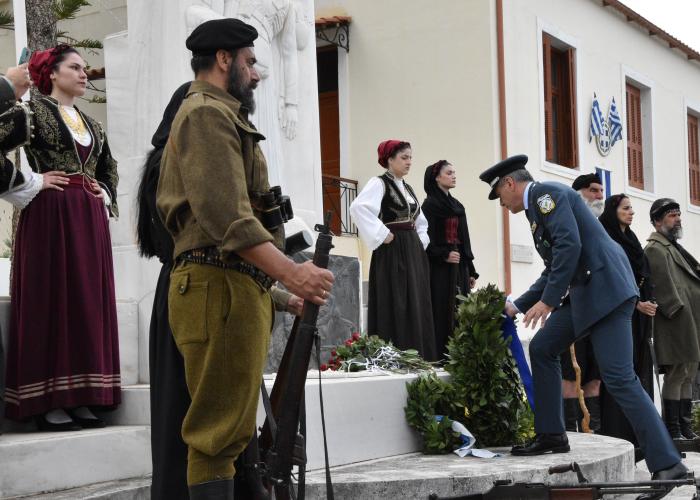 Ακολούθησε επιμνημόσυνη δέηση στο Μαυσωλείο, χοροστατούντος του Σεβασμιοτάτου Μητροπολίτη Ρεθύμνου και Αυλοποτάμου κ.κ. Προδρόμου, αναγνώστηκε η ημερήσια διαταγή από το Διοικητή του Τμήματος, Αστυνομικό Διευθυντή κ. Γερμανάκη Σπυρίδωνα, έγινε προσκλητήριο νεκρών υπό τους ήχους των τιμητικών βολών αγήματος και κατάθεση στεφάνων από τους επίσημους προσκεκλημένους.