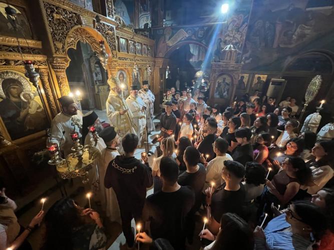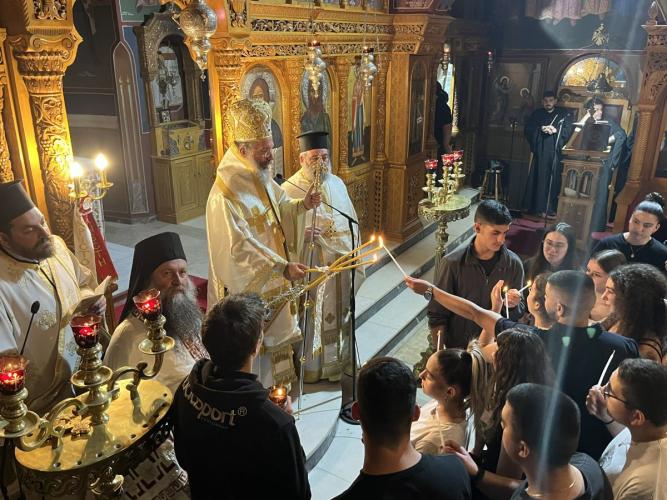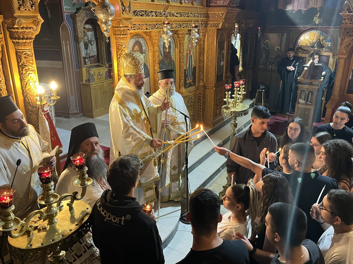 Το βράδυ της Τετάρτης, 29ης Μαΐου 2024, ο Σεβασμιώτατος Μητροπολίτης Ρεθύμνης και Αυλοποτάμου κ. Πρόδρομος, συμπαραστατούμενος από κληρικούς της Ιεράς Μητροπόλεώς μας, τέλεσε Νυκτερινή Αρχιερατική Θεία Λειτουργία στον Ιερό Ναό Αγίων Τεσσάρων Μαρτύρων της πόλεως Ρεθύμνης, με τη συμμετοχή πλήθους νέων παιδιών του τόπου μας.