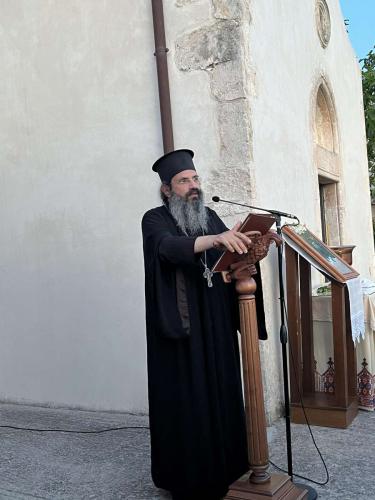 Επίσης, ο Σεβασμιώτατος ευχαρίστησε εγκάρδια τον Αιδεσιμολ. Πρωτοπρεσβύτερο Σπυρίδωνα Βασιλάκο, Εφημέριο του Ιερού Προσκυνηματικού Ναού Ευαγγελιστού Λουκά Θηβών της Ιεράς Μητροπόλεως Θηβών και Λεβαδείας, ο οποίος προσήλθε προσκεκλημένος και μετά το πέρας των Θυρανοιξίων ανέπτυξε με γλαφυρότητα, με καρδιακό και βιωματικό λόγο, τη ζωή, τη μαρτυρία και το παράδειγμα του Οσίου Πατρός ημών Ιωσήφ του Ησυχαστού, δίδοντας σε όλο το πολυπληθές ακροατήριο πνευματικό επιστηριγμό και ενίσχυση και δύναμη ψυχής.