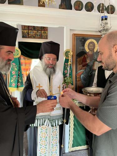 Μετά την Ιερά Ακολουθία των Θυρανοιξίων και την είσοδο στο νέο Ιερό Παρεκκλήσιο, καταλλήλως προσφώνησε τον Σεβασμιώτατο ο Πανοσιολ. Αρχιμανδρίτης Άνθιμος Μαντζουράνης, Ιεροεπιστάτης του Ιερού Μετοχίου, ο οποίος, με βαθειά συγκίνηση, αναφέρθηκε στο ιερό πρόσωπο του νέου Οσίου Πατρός ημών Ιωσήφ του Ησυχαστού, καθώς και στο Ιερό Παρεκκλήσιο που αποκτά το Ιερό Μετόχιο του Αγίου Παύλου Γάλλου μετά τη διαμόρφωση υπάρχοντος χώρου, παρακείμενου στο Καθολικό του Μετοχίου. Ο π. Άνθιμος εξέφρασε τις ευχαριστίες του προς όσους στήριξαν παντοιοτρόπως τη δημιουργία του Ιερού αυτού Παρεκκλησίου, τους Κληρικούς που παρέστησαν και τον Σεβασμιώτατο Ποιμενάρχη μας κ. Πρόδρομο, για τη συμμετοχή τους στην πνευματική αυτή εσπερίδα.