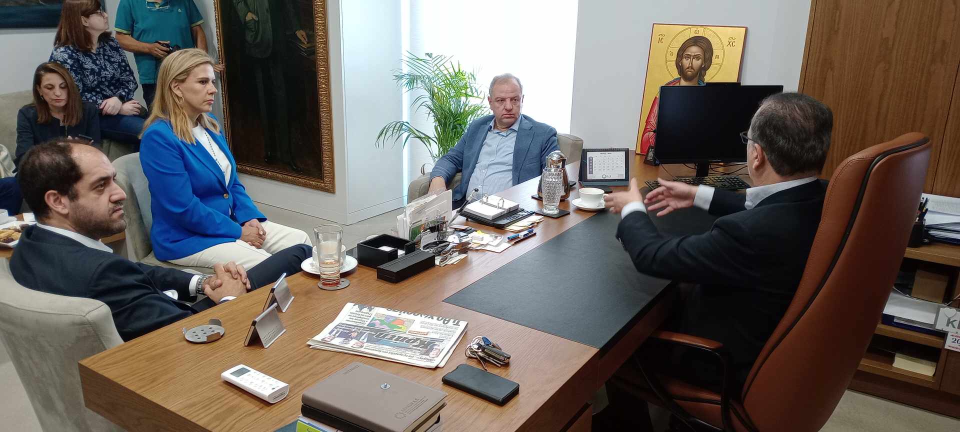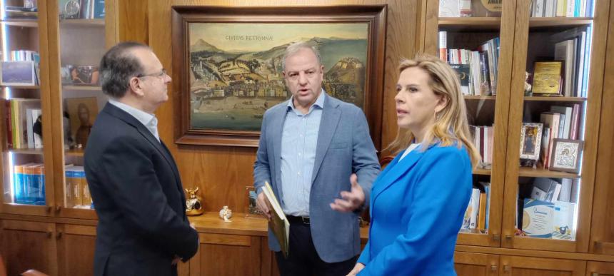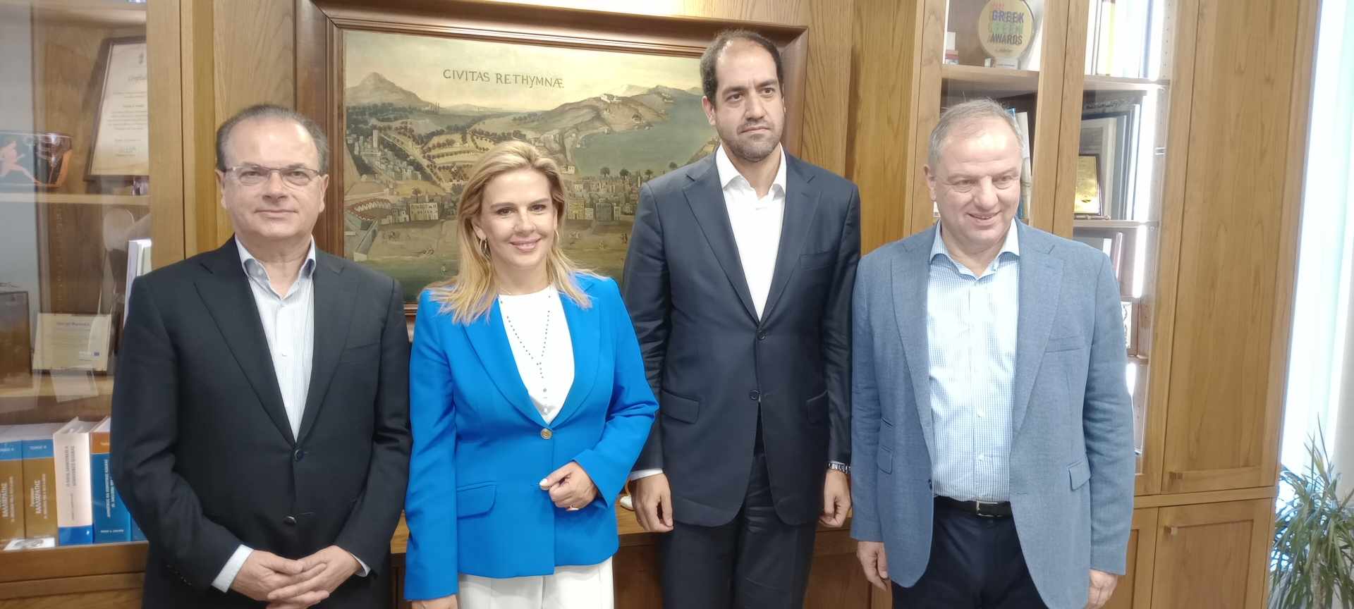Ο Υφυπουργός, επικεφαλής κλιμακίου της κυβερνητικής παράταξης, στο οποίο συμμετείχαν ο Υφυπουργός Εθνικής Άμυνας κ. Γιάννης Κεφαλογιάννης και η Βουλευτής της Ν.Δ. κ. Ζωή Ράπτη, επισκέφθηκαν το πρωί του Σαββάτου τον Δήμαρχο Ρεθύμνης κ. Γιώργη Μαρινάκη στο Δημαρχείο της πόλης