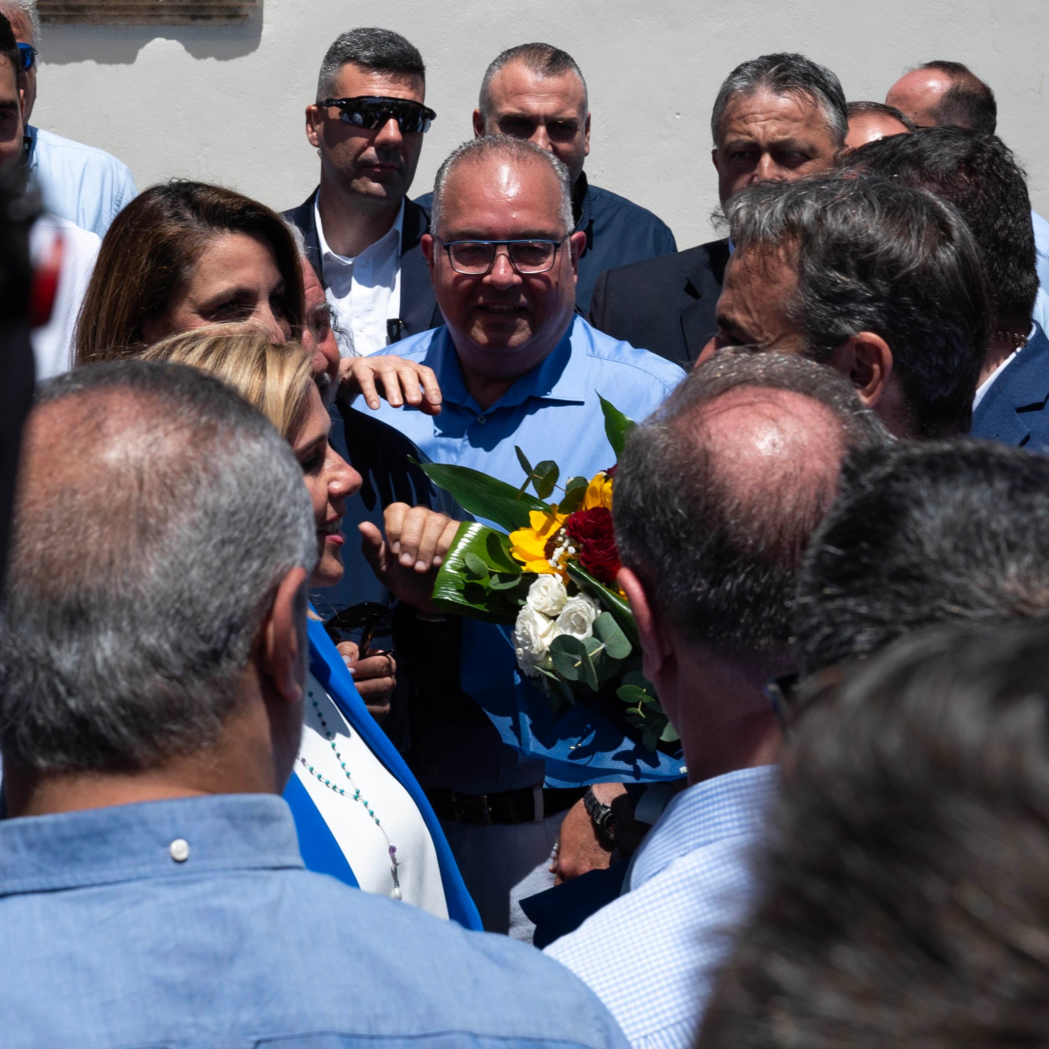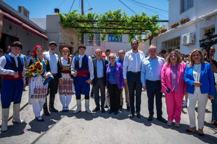 Κατά τα πατροπαράδοτα το πρώτο καλωσόρισμα έγινε με ένα μπουκέτο λουλούδια και βεβαίως με το πατροπαράδοτο κρητικό σαρίκι.