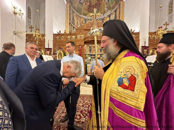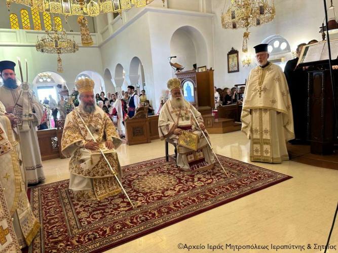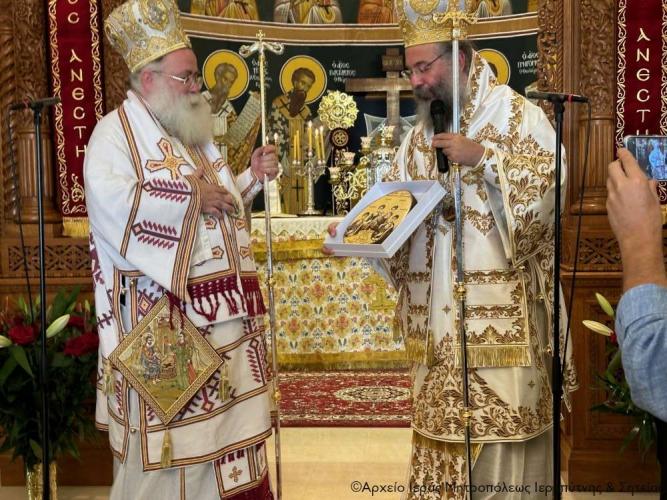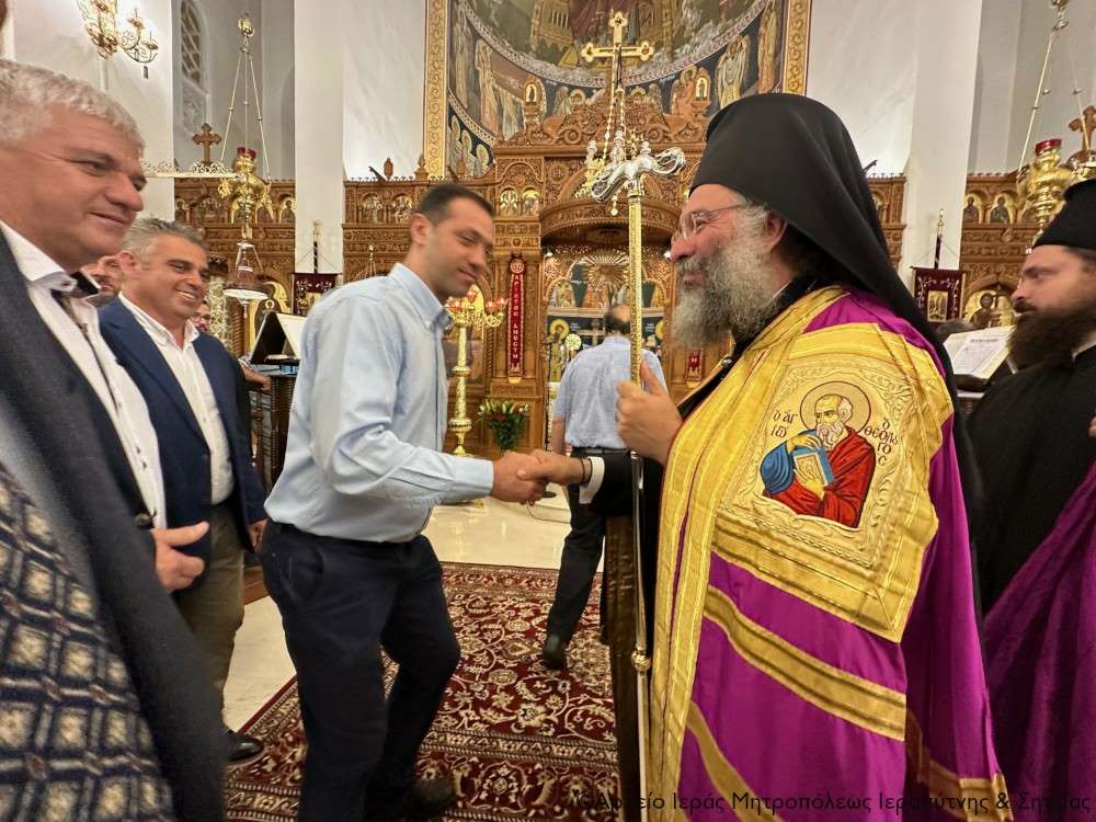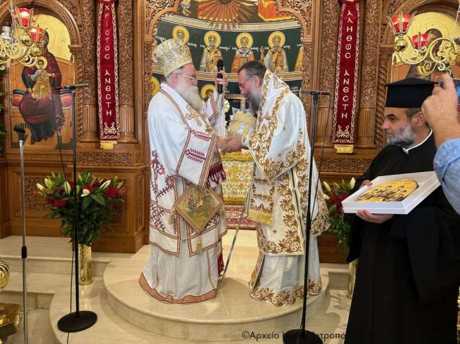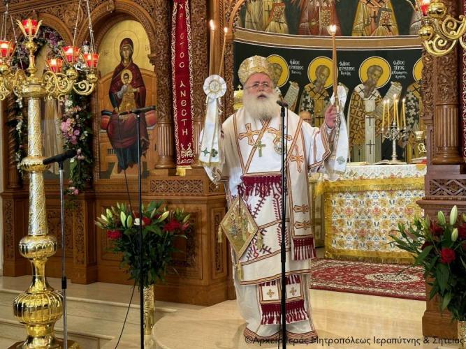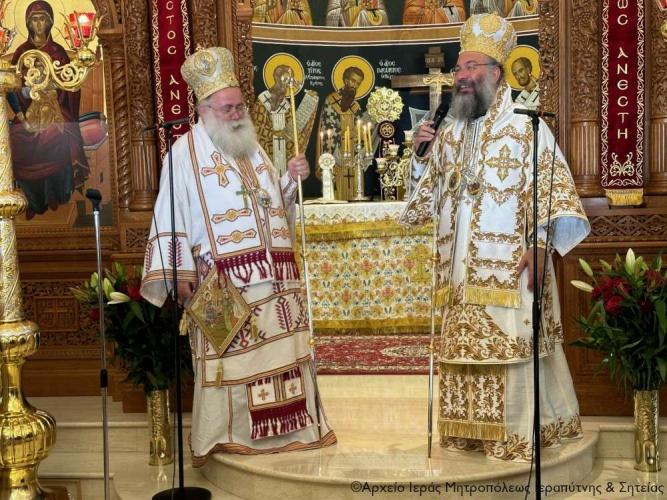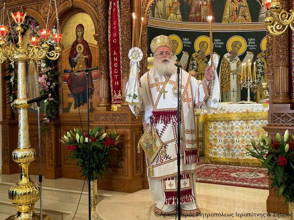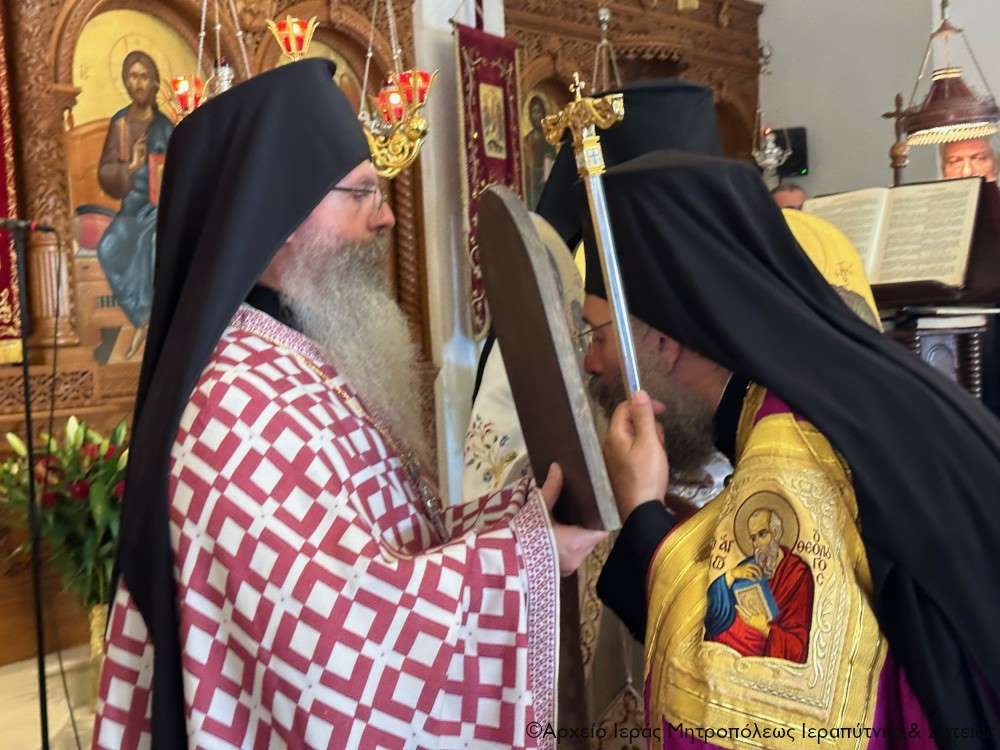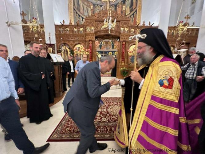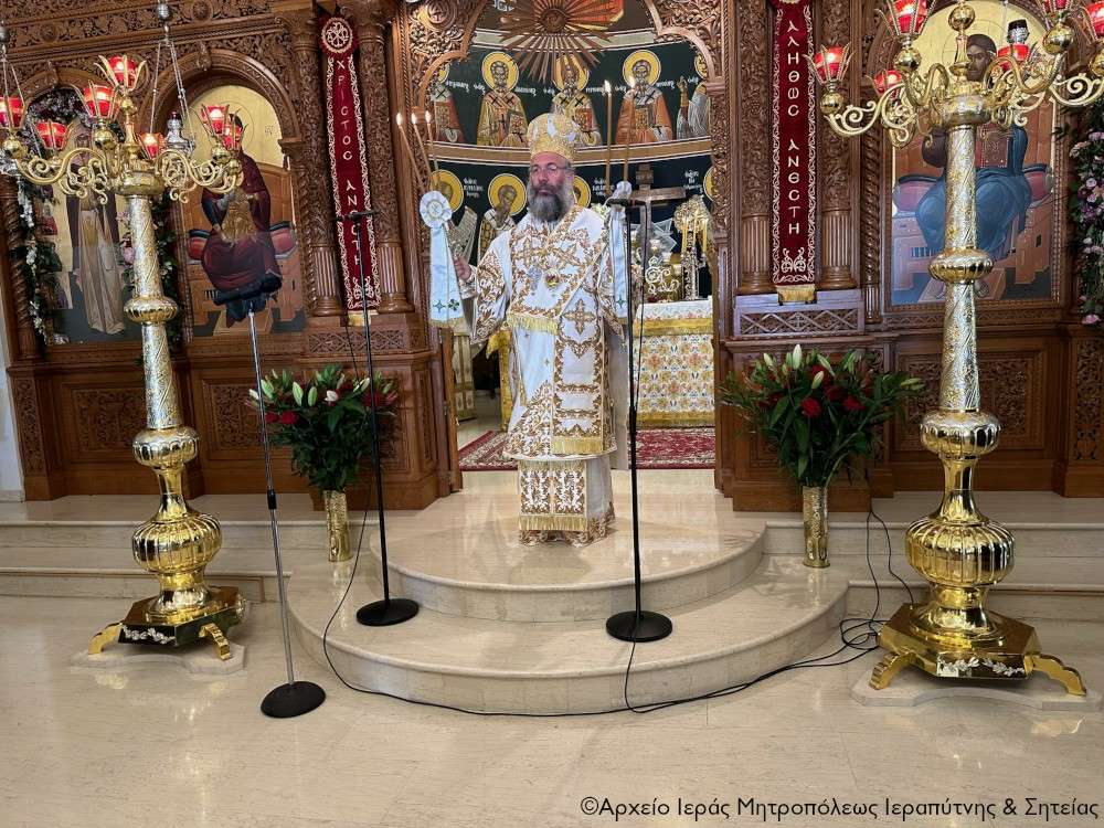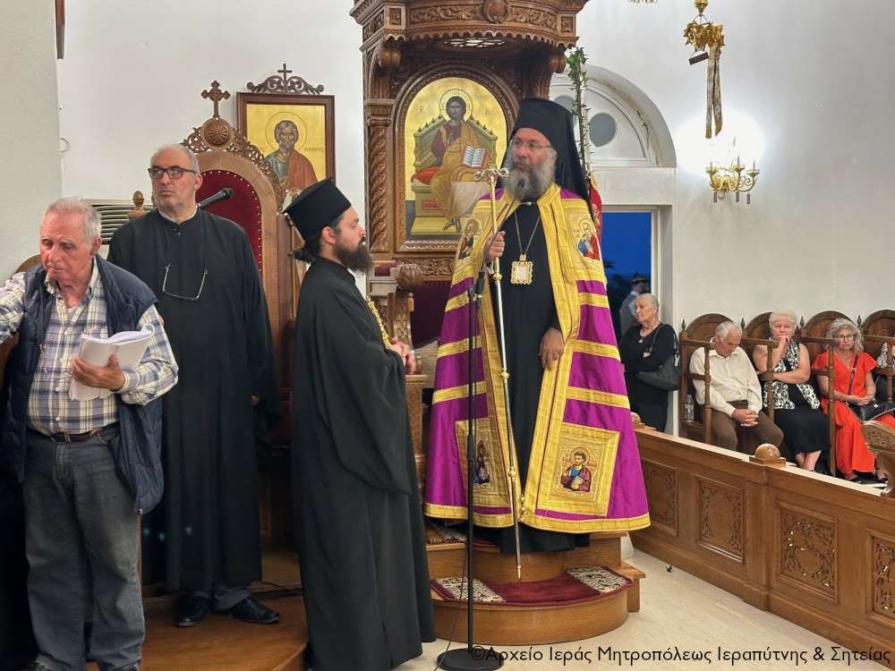 Τέλος ευχαρίστησε τον Σεβ. Αδελφό του κ. Κύριλλο για την καρδιακή υποδοχή, συνεχάρη τον Δήμαρχο Ιεράπετρας και τους συνεργάτες του για την παρουσία τους, με την οποία δίδουν το καλό παράδειγμα στο λαό του τόπου, και όλους τους συμμετέχοντες σε αυτό το «καλό συναπάντημα» της πανηγύρεως.