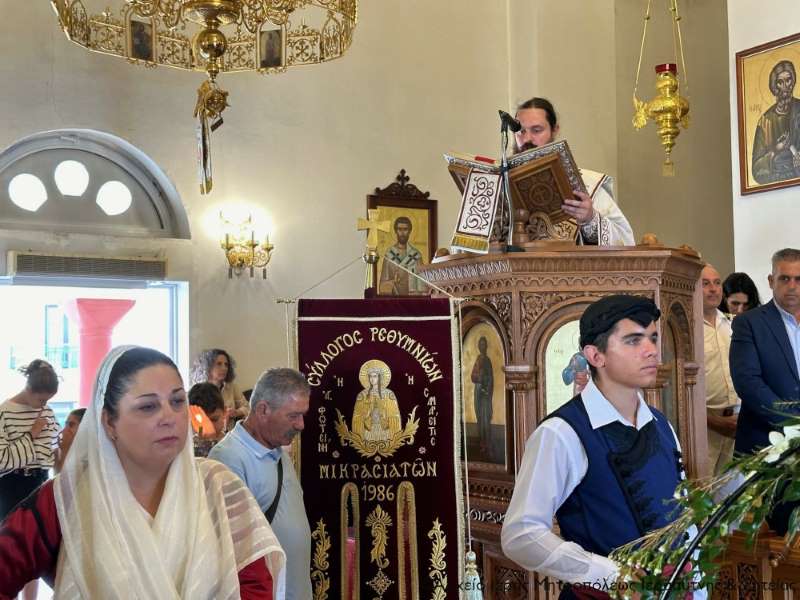Ο Σεβ. κ. Κύριλλος επεσήμανε ακόμα ότι με την παρουσία των ιερών λειψάνων των Τεσσάρων Νεομαρτύρων του Ρεθύμνου, που ο Σεβ. κ. Πρόδρομος κατά το φετινό επετειακό έτος στο πλαίσιο των εκδηλώσεων μεταφέρει σε όλες τις Ι. Μητροπόλεις της Κρήτης, διαχέεται η ευλογία των αγίων σε όλο το νησί και μαρτυρείται έτσι η ενότητα των Κρητών. Καλούμαστε να μείνουμε προσηλωμένοι στην πίστη των πατέρων μας και κοντά στους Αγίους μας. Ευχήθηκε δε να στηρίζουν όλους μας στην πίστη οι τέσσερεις Κρήτες Άγιοι αλλά και η Αγία Μεγαλομάρτυς και Ισαπόστολος Φωτεινή, η οποία συνάντησε τον Σωτήρα Χριστό στο πηγάδι του Ιακώβ όπου πήγε για να αντλήσει νερό και είχε μαζί Του έναν αποκαλυπτικό διάλογο. Ο Χριστός παραμέρισε τις αμαρτίες και την άστατη ζωή της και μίλησε απευθείας στην καρδιά της. Αποκάλυψε κεφάλαια της ζωής της και της μίλησε για το «ύδωρ το ζων» που ζωογονεί και ξεδιψάει πνευματικά τον άνθρωπο, αλλά και για την «εν πνεύματι και αληθεία λατρεία» του Θεού, που δεν έχει σχέση με συγκεκριμένο τόπο και με την τυπολατρία.