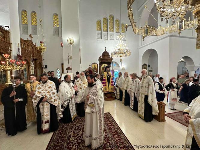 Στη συνέχεια τελέσθηκε ο Μέγας Πανηγυρικός Εσπερινός της εορτής της Αγίας ενδόξου Μεγαλομάρτυρος Φωτεινής της Σαμαρείτιδος, χοροστατούντος του Σεβ. Μητροπολίτου Ρεθύμνης και Αυλοποτάμου κ. Προδρόμου, και συμπροσευχομένου εκ του Ιερού Βήματος του Σεβ. Μητροπολίτου Ιεραπύτνης και Σητείας κ. Κυρίλλου.