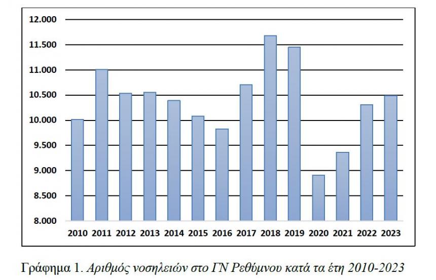 Με αυτό το άρθρο προσπαθούμε να δώσουμε μια συνολική εικόνα της χρησιμότητας του Νοσοκομείου Ρεθύμνου τόσο για τον Νομό μας όσο και για τους γειτονικούς νομούς καθώς και για τους ανθρώπους που βρέθηκαν ή θα βρεθούν εδώ. Τα στοιχεία που επεξεργαστήκαμε αφορούν τις νοσηλείες στο νοσοκομείο μας όπως αυτές καταγράφονται και αποστέλλονται στην ΕΛΣΤΑΤ στα πλαίσια της έρευνας νοσηλευτικής κίνησης. Αφορούν την χρονική περίοδο 2010-2023 δηλαδή για 14 χρόνια συνολικά.