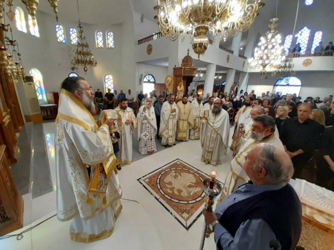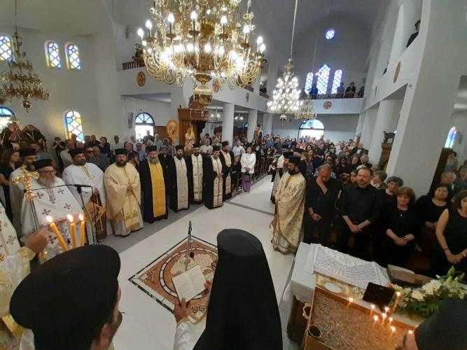 Προ της απολύσεως της Θείας Λειτουργίας, ο Σεβασμιώτατος αναφέρθηκε στην πολυετή και πολύπτυχη προσφορά του μακαριστού π. Παντελεήμονος, στον δυναμικό του χαρακτήρα, στη διακονία του στην Τοπική μας Εκκλησία, σε όσες Ενορίες υπηρέτησε, με επίκεντρο την Ενορία των Μισιρίων, όπου ανήγειρε, με την αρωγή και συμπαράσταση πλειάδος ανθρώπων, τον περικαλλή Ιερό Ναό των Αγίων Αποστόλων Πέτρου και Παύλου.