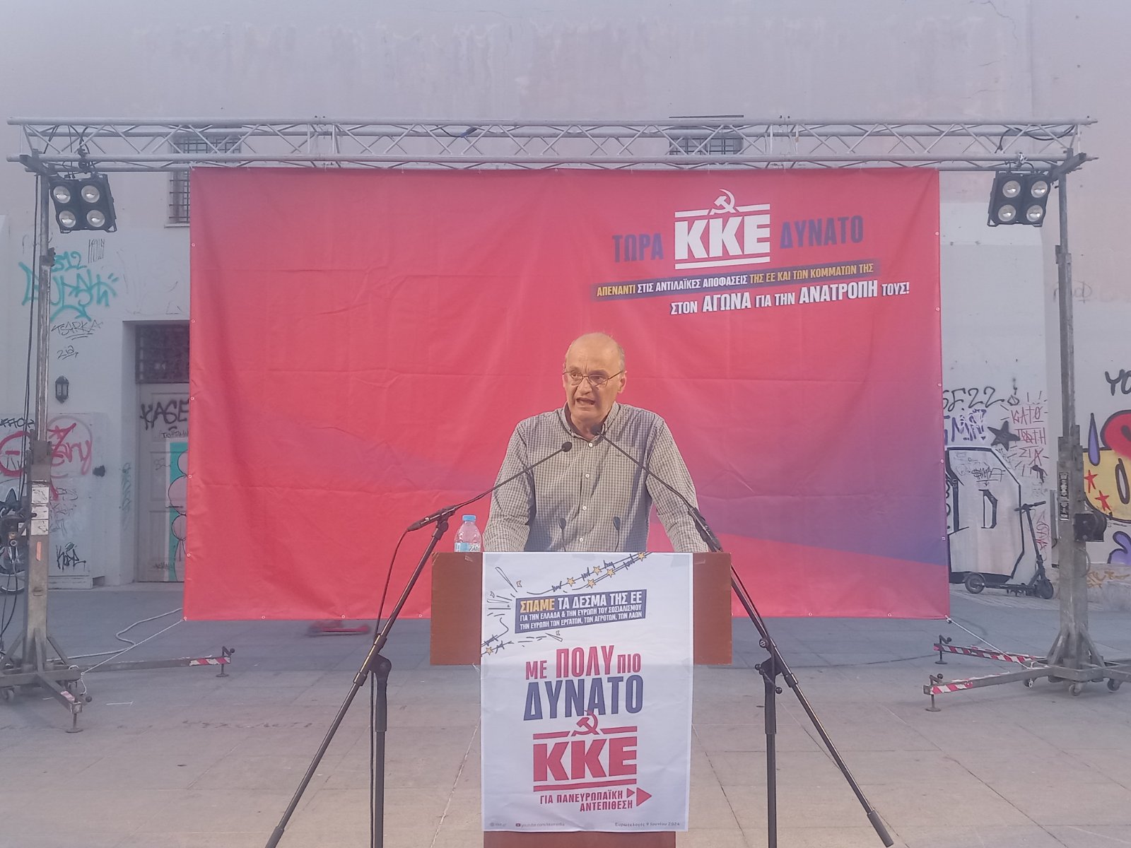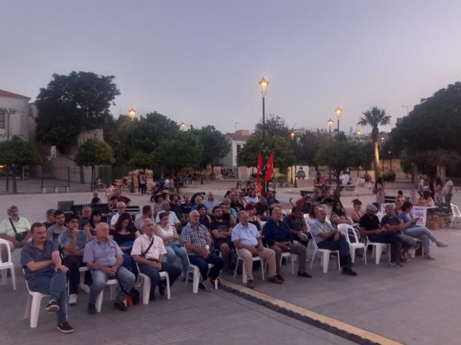 Με την παρουσία πλήθος κόσμου πραγματοποιήθηκε η κεντρική προεκλογική συγκέντρωση του ΚΚΕ στο Ρέθυμνο ,την Τρίτη 4 Ιουνίου, στην πλατεία Μικρασιατών, με κεντρικό ομιλητή τον Γιάννη Τασιούλα μέλος της Κ.Ε του ΚΚΕ, πρόεδρο της Ομοσπονδίας Οικοδόμων και υποψήφιος ευρωβουλευτής του ΚΚΕ. Στην συγκέντρωση το παρόν έδωσε ο Τηλέμαχος Δημουλάς μέλος της Γραμματείας της Κ. Ε του ΚΚΕ , ο Αλέκος Μαρινάκης μέλος του Γραφείου Περιοχής Κρήτης του ΚΚΕ και περιφερειακός σύμβουλος Κρήτης της «Λαϊκής Συσπείρωσης» και Νίκος Μανουσάκης μέλος της Επιτροπής Περιοχής Κρήτης του ΚΚΕ και περιφερειακός σύμβουλος Κρήτης της «Λαϊκής Συσπείρωσης». Το άνοιγμα της συγκέντρωσης έκανε ο Στράτος Μανιαβός μέλος του Τ.Γ Ρεθύμνου του ΚΚΕ.