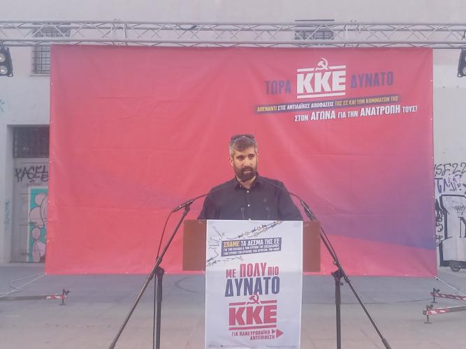 Με το δυνάμωμα του ΚΚΕ να ενισχυθεί η σταθερότητα της μαχητικής αντιπολίτευσης , της αμφισβήτησης , της σύγκρουσης με την κυβέρνηση , την ΕΕ, το κεφάλαιο. Στις 9 Ιούνη κρίνεται το πόσο πιο ισχυρό θα είναι το ΚΚΕ και πόσο πιο αποδυναμωμένη η κυβέρνηση και τα κόμματα της ΕΕ.