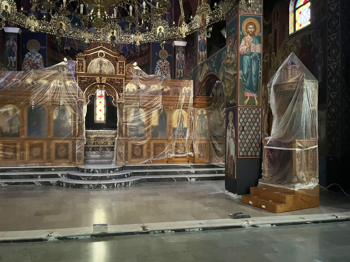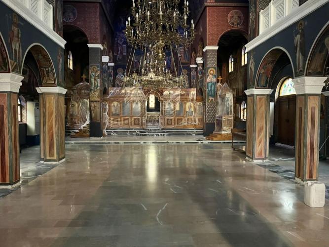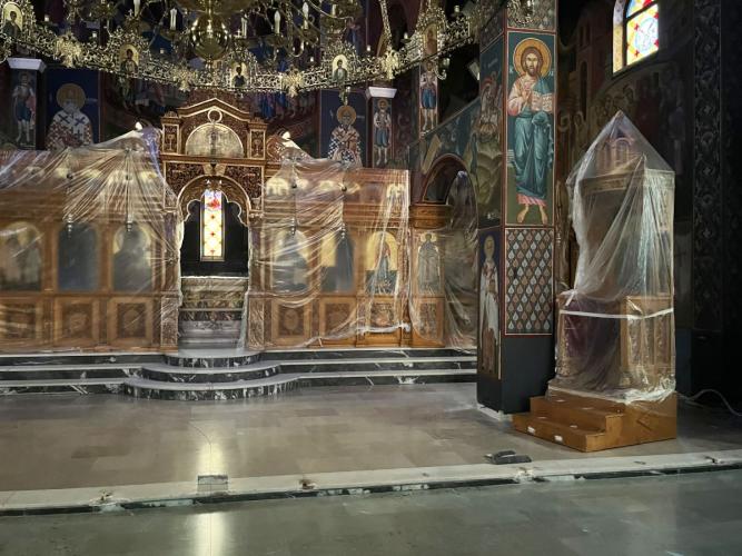 Μέχρι την περάτωση των εργασιών, οι Ιερές Ακολουθίες θα τελούνται στο Παρεκκλήσιο του Αγίου Σάββα, παρακείμενο στην αίθουσα εκδηλώσεων του Ιερού Ναού (είσοδοι από τη λεωφόρο Κουντουριώτη και την οδό Γερακάρη).