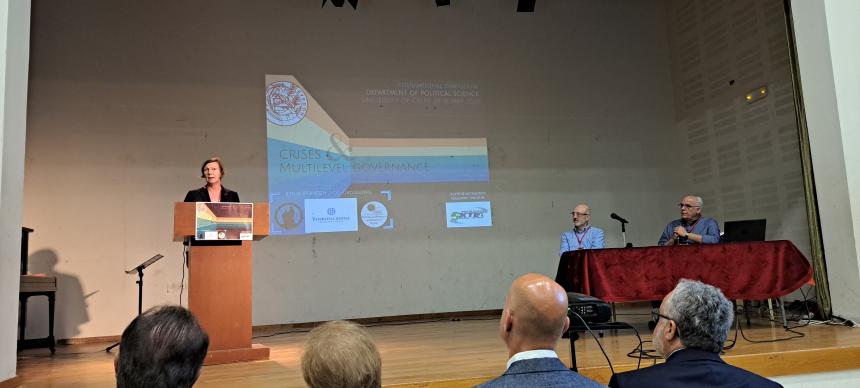 Μεταξύ 29 και 31 Μαΐου 2024 διεξήχθη με επιτυχία το τριήμερο διεθνές συμπόσιο με θέμα «Κρίσεις και Πολυεπίπεδη Διακυβέρνηση». Το συμπόσιο διοργανώθηκε από το Τμήμα Πολιτικής Επιστήμης σε συνεργασία με το Εθνικό Αστεροσκοπείο Αθηνών, το Κέντρο Έρευνας Δημοκρατίας και Δικαίου του Πανεπιστημίου Μακεδονίας, και την Περιφέρεια Κρήτης. Οι εργασίες του συμποσίου ξεκίνησαν την Τετάρτη 29 Μαΐου με την κεντρική ομιλία της Πρυτάνεως του Science Po Grenoble Καθηγήτριας Sabine Saurugger. Στην πολύ ενδιαφέρουσα ομιλία της, η οποία είχε τίτλο “Crises, Universities and Governance in the Evolving European Knowledge Economy” η Καθηγήτρια Saurugger παρουσίασε, συγκρίνοντας τη Γαλλική με την ευρωπαΐκή εμπειρία, τις προκλήσεις που αντιμετωπίζουν τα σχήματα διακυβέρνησης των ευρωπαϊκών πανεπιστημίων στο σύγχρονο πλαίσιο της οικονομίας της γνώσης.
