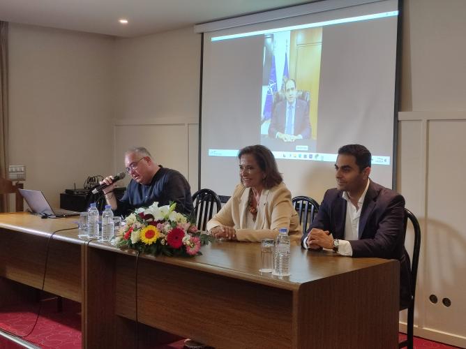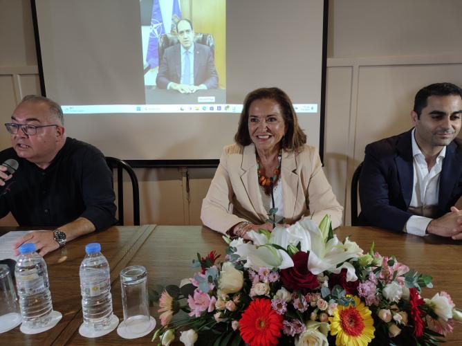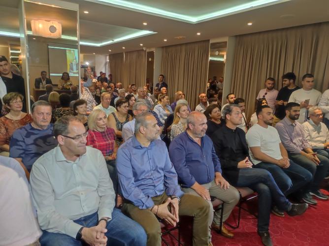 Την κ. Μπακογιάννη προλόγισε ο πρόεδρος τη τοπικής διοικούσας της Ν.Δ. (ΔΕΕΠ) κ. Μανώλης Φουρφουλάκης ενώ παρευρέθηκε ο υποψήφιος ευρωβουλευτής κ. Ορέστης Ομράν Κουκουβιτάκης, ο οποίος απηύθυνε χαιρετισμό.
