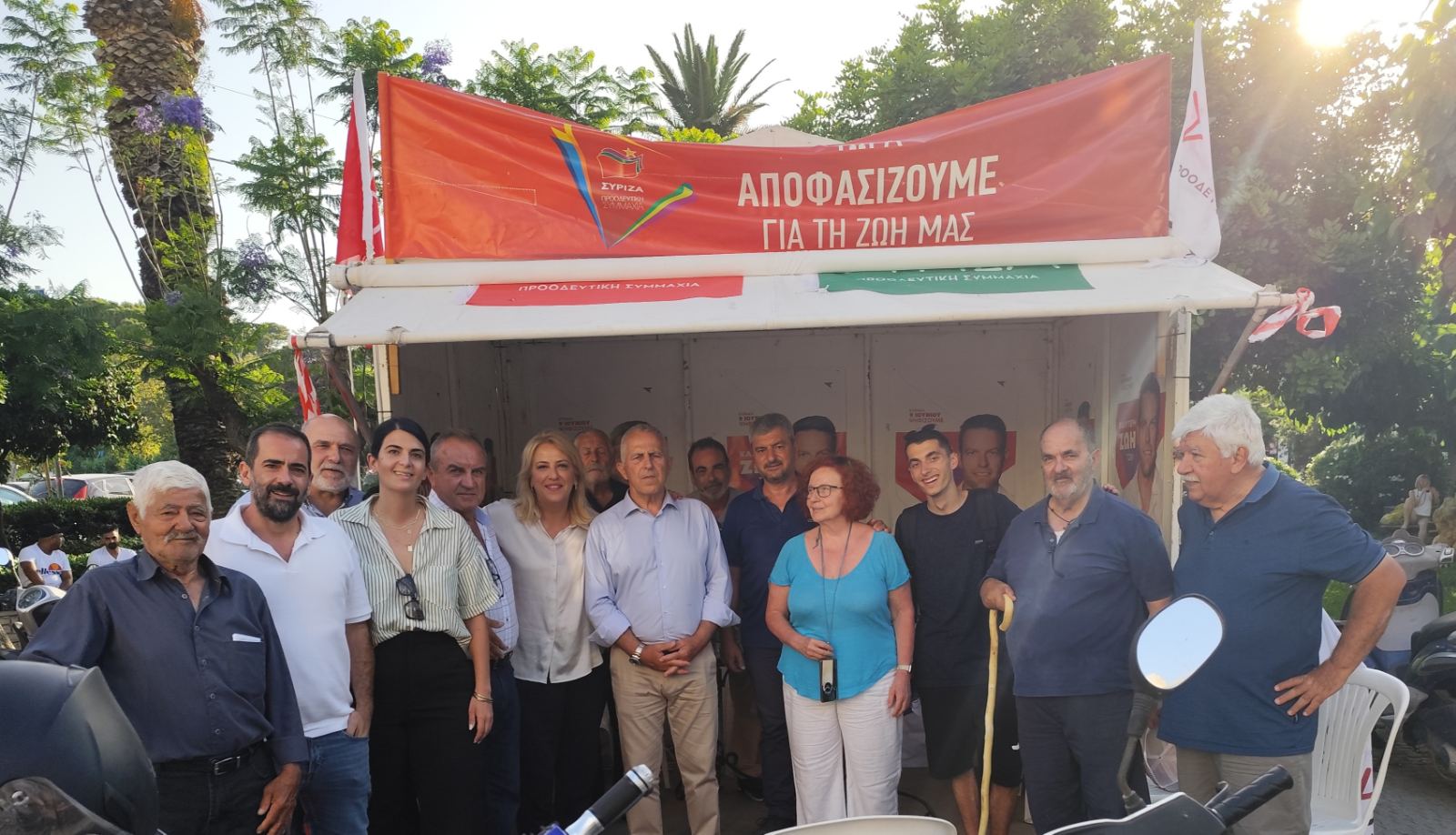 Η βόλτα ξεκίνησε από το εκλογικό περίπτερο του ΣΥΡΙΖΑ Π.Σ. στην πλατεία 4 Μαρτύρων.